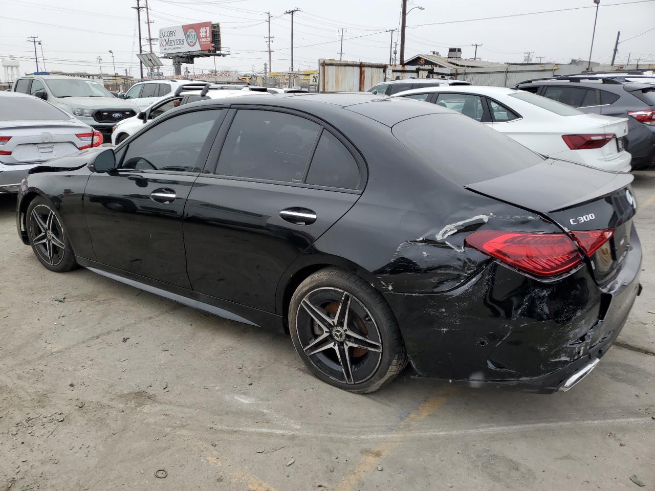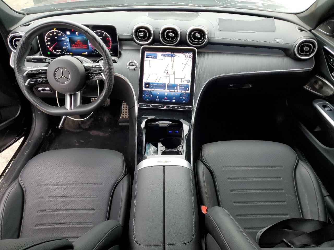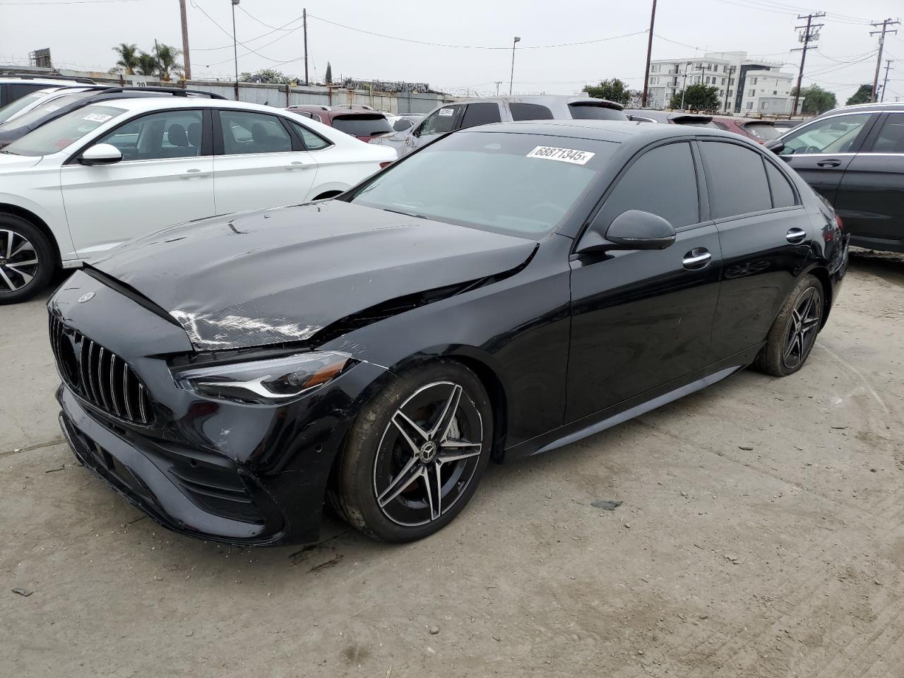FairThis is a black 2024 Mercedes-Benz C 300 4MATIC. The vehicle has suffered damage to both the front and rear, indicating impact from both ends. The car's "Run & Drive Verified" status suggests it is operational. The interior appears to be in good condition.