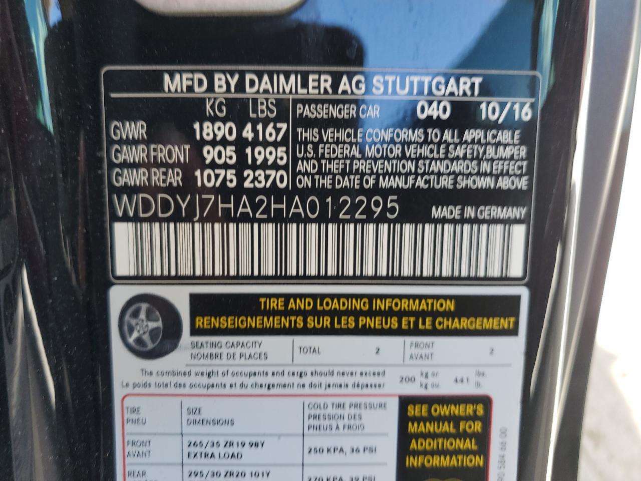 GoodThis 2017 MERCEDES-BENZ AMG GT, black in color, exhibits minor dent/scratches, categorized as Body damage. The Run & Drive Verified vehicle presents with a good overall exterior and interior condition. The car itself is a sporty coupe, celebrated for its powerful engine and luxurious interior. The wheels and lights show no visible damage, and the glass is intact. The vehicle is drivable.
