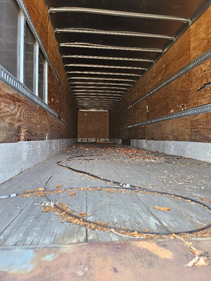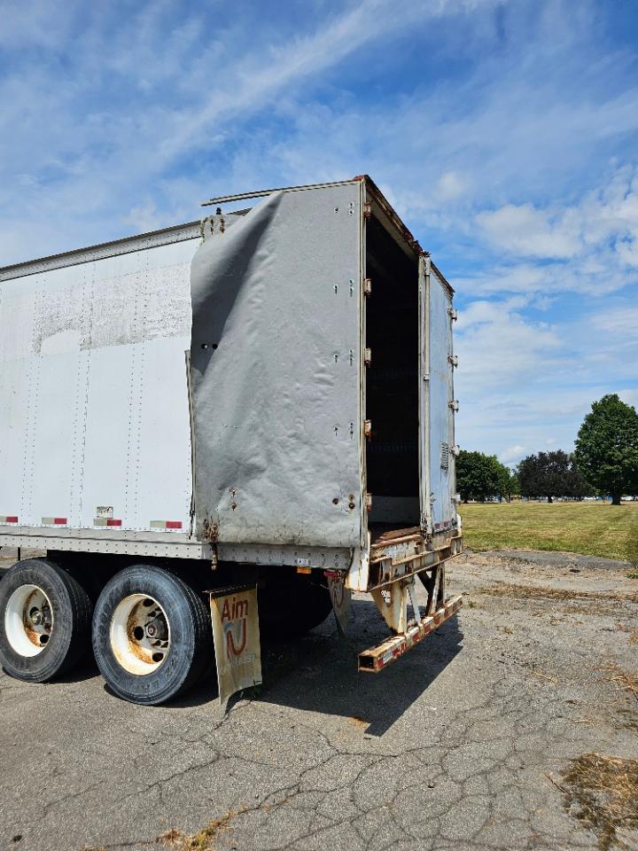 FairThis is a 2001 Strick trailer with visible damage to the rear end. The trailer is white. The wheels appear to be in fair condition. There is no apparent damage to the lights or the glass. The interior condition is good. Overall, the trailer is drivable but needs repairs.