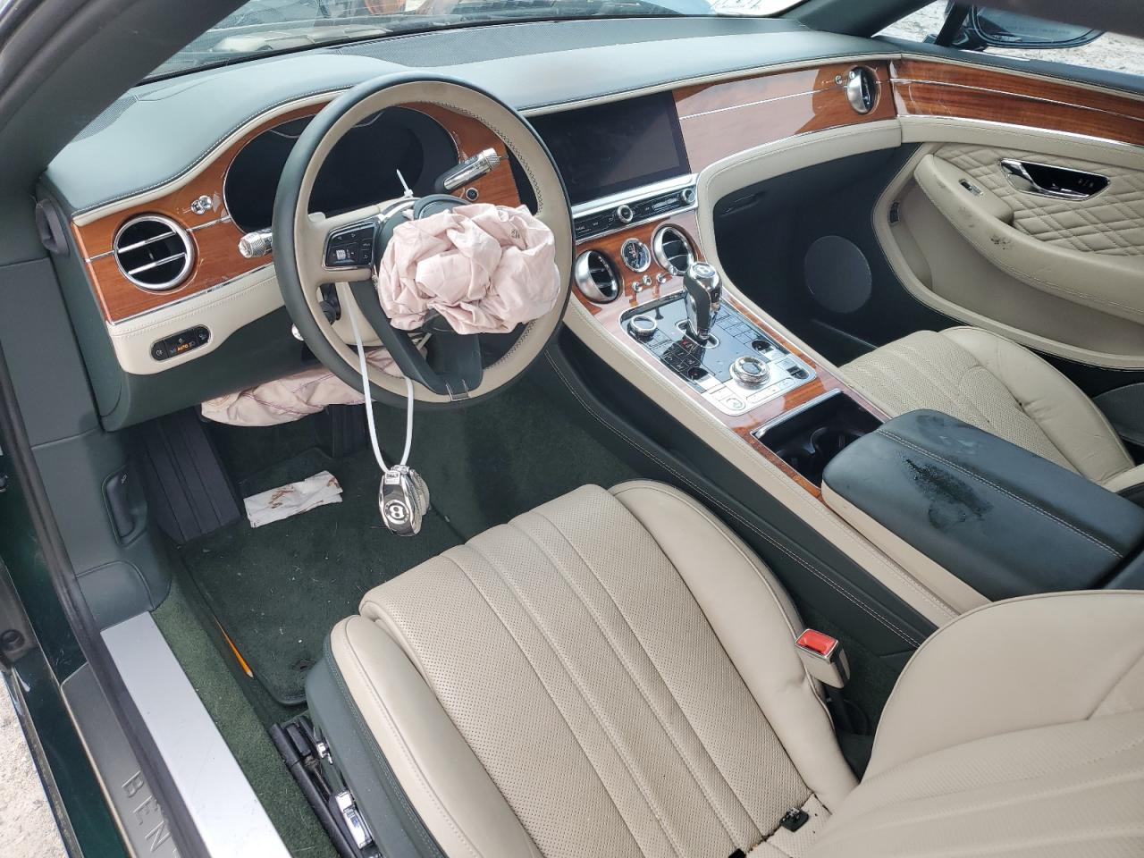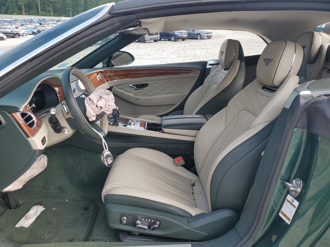 FairThe 2023 Bentley Continental convertible, in a striking green, has sustained significant damage in multiple collisions. The primary damage is extensive, affecting body panels across the front, rear, and sides. Secondary damage is not specified. The car's front end is severely compromised, with the hood, bumper, and front quarter panels heavily damaged. The rear of the vehicle shows significant impact damage, with the trunk and rear quarter panels crushed. Interior damage includes deployed airbags. Overall, the car requires extensive repairs.