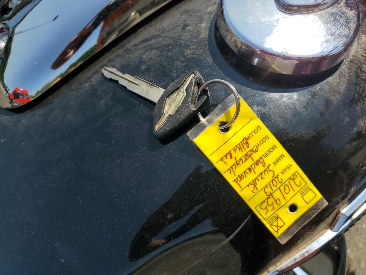 FairThe SUZUKI VL800 T 2013 is a two-tone motorcycle. The images show a motorcycle with rollover damage but no secondary damage. The vehicle appears drivable but may require repairs. The paint and trim show moderate damage. The lights and glasses appear to be in good condition. Interior condition is good, with minor wear and tear. The wheels seem fine.