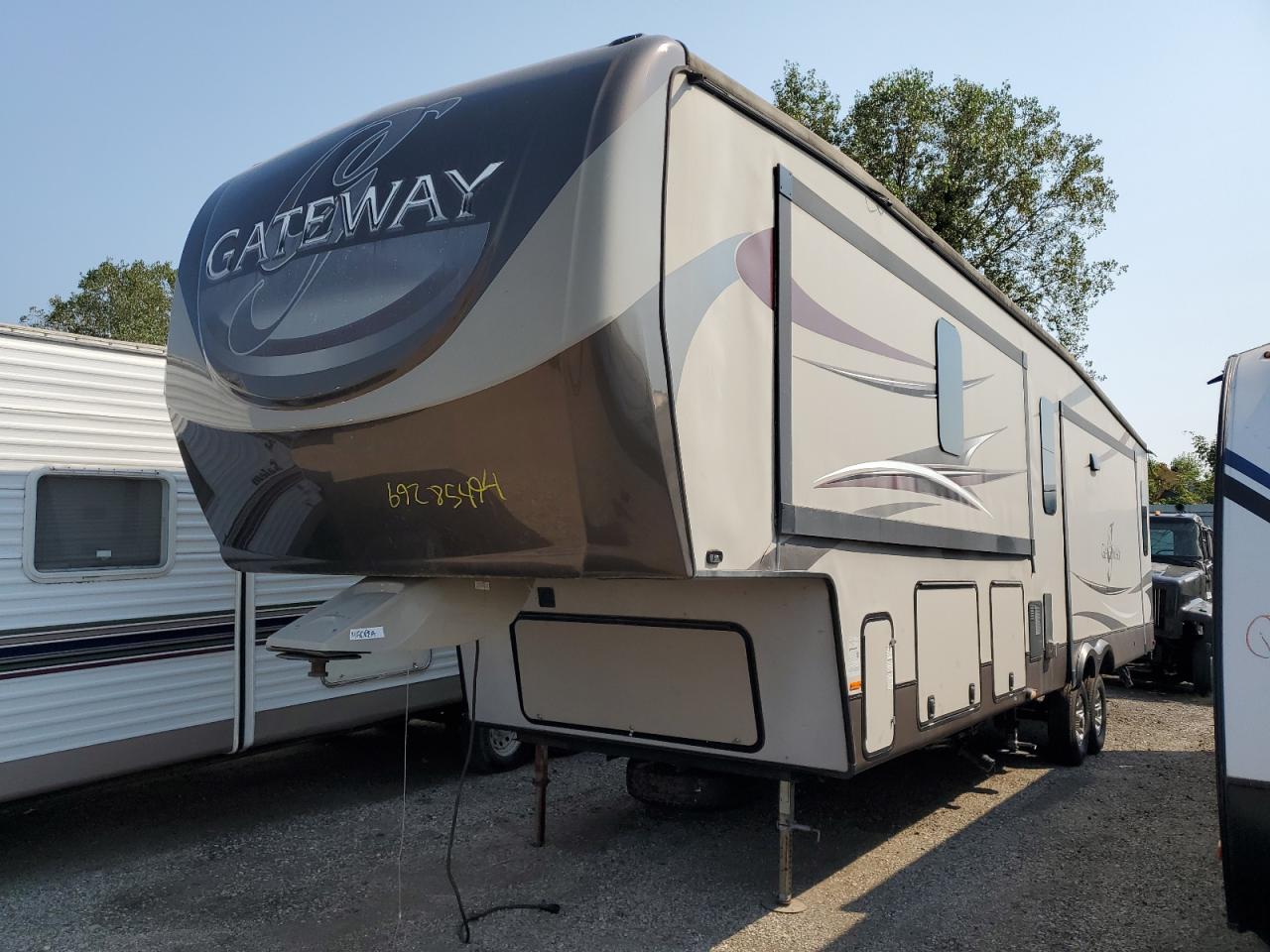 GoodThis HEART LAND GATEWAY 2015, beige in color, presents with cosmetic and body damage. The side of the RV shows primary damage, while the interior condition appears relatively intact. Despite the damage, the vehicle's drivability is assumed, leading to a 'Good' exterior rating. The overall condition reflects the balance between visible damage and the absence of mechanical issues.