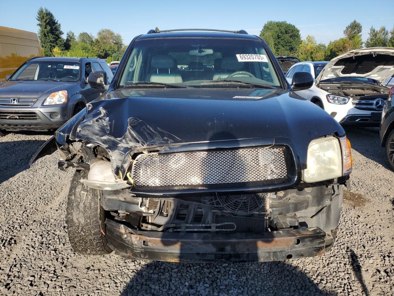 FairThe 2004 TOYOTA SEQUOIA LIMITED SUV, finished in black, exhibits front-end damage, categorized as Body damage. The start code is Run & Drive Verified. The vehicle's exterior shows signs of moderate visible damage, wheels are fine, may require repair but drivable. Interior condition has moderate damage. The airbag appears to be intact. The car requires considerable repair. Overall, the vehicle is in fair condition. Synonyms for search query: Toyota Sequoia, damaged, front end crash, repairable, salvage, black SUV, body damage, drivable.