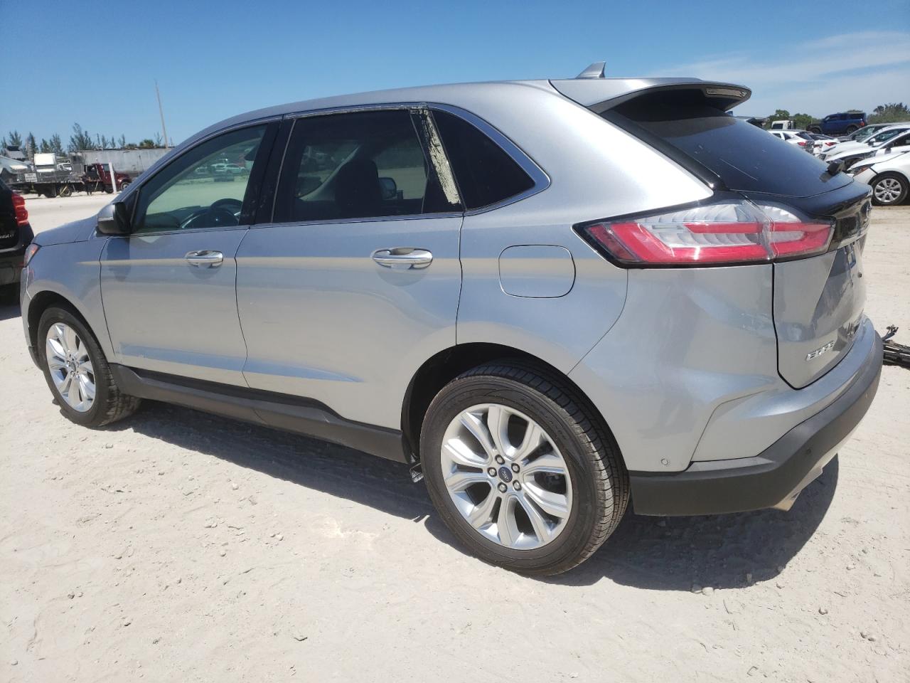 GoodThis is a silver 2020 Ford Edge Titanium. The primary damage is water/flood, with no secondary damage reported. The vehicle's start code is Run & Drive Verified. The car has a moderate amount of damage. The wheels appear to be intact, and the lights and glasses seem to be in good condition. The interior shows minor wear consistent with age and mileage.