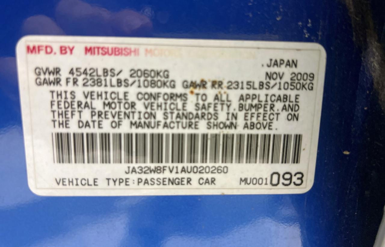 FairThis is a 2010 Mitsubishi Lancer Evolution. The vehicle is blue and has a Run & Drive Verified start code. It shows minor dent/scratches and normal wear. The images show a car with visible body damage.