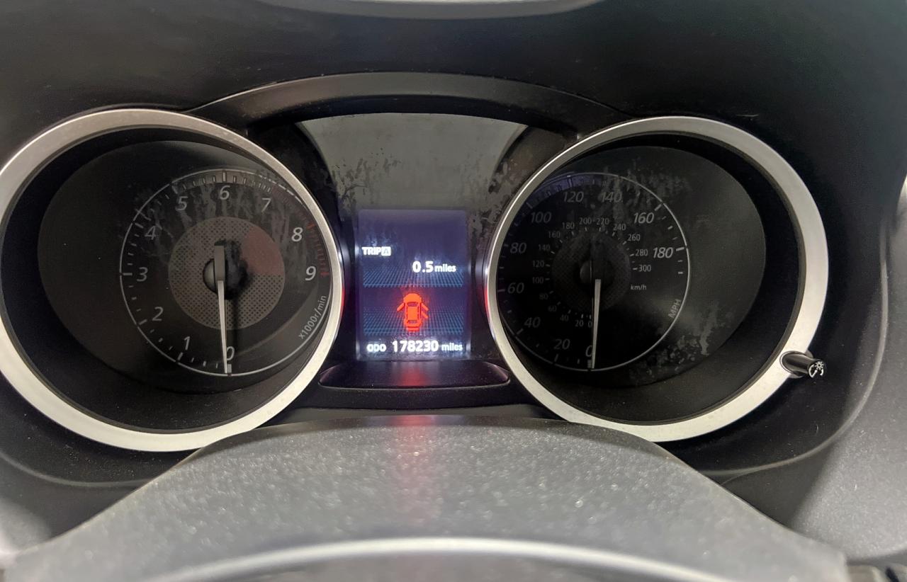 The car has cosmetic damage and visible body panel issues, with scratches and wear. The interior shows some wear consistent with age.