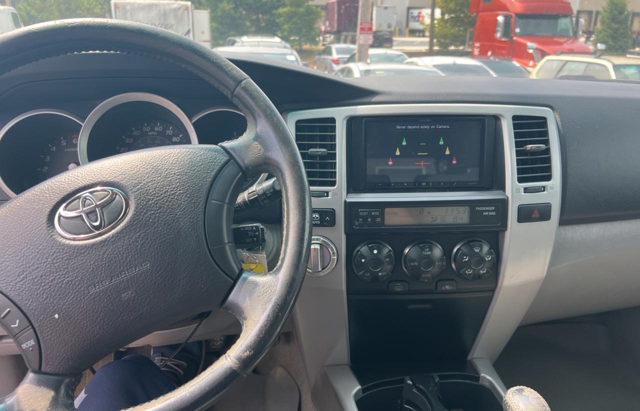 The Toyota 4Runner SR shows signs of wear and tear, particularly at the rear end, suggesting impact damage. The exterior has moderate visible damage consistent with its age and usage. While the wheels appear to be in good condition, other components may require repair or replacement. The interior appears to be in good condition, with minor wear and tear