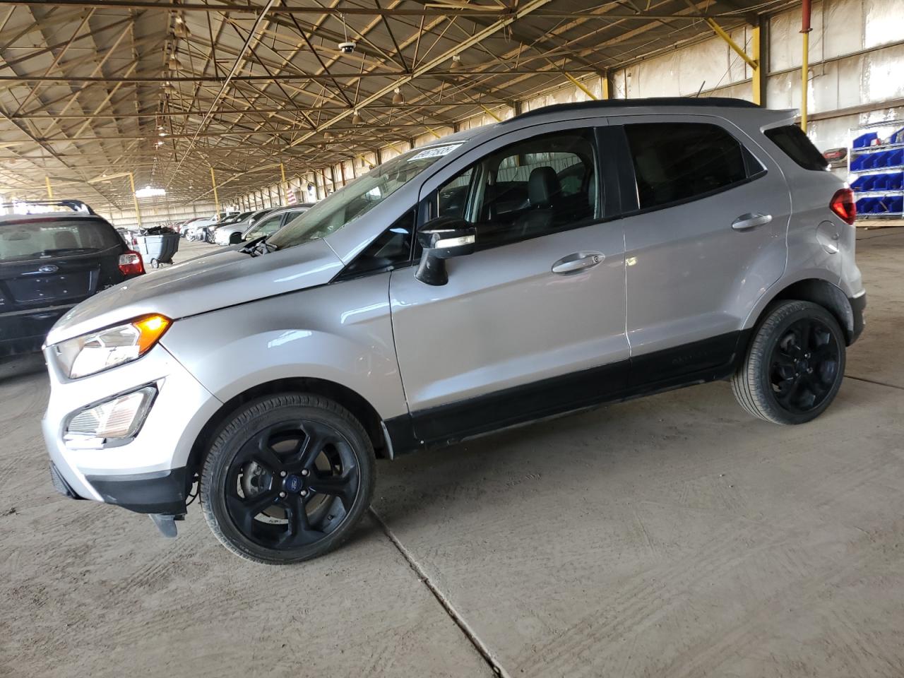 GoodThis is a silver 2020 FORD ECOSPORT S. The vehicle shows minor dents and scratches, indicating some cosmetic wear. The wheels and lights appear to be in good condition. The interior shows normal wear and tear consistent with its age and mileage. The car is a 'Run & Drive Verified' vehicle.