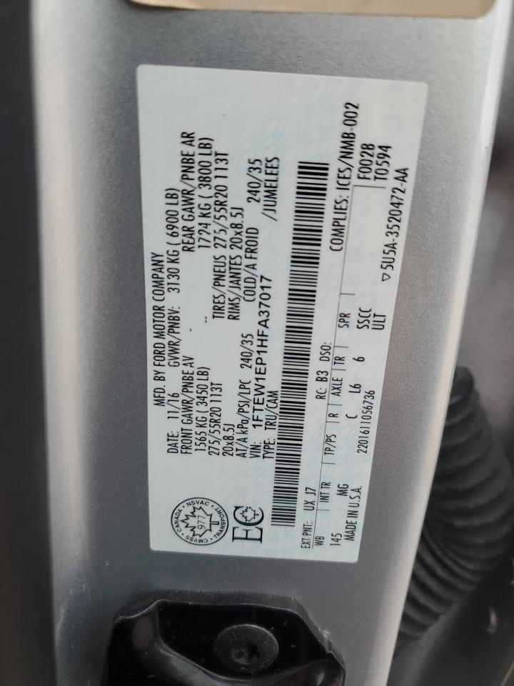 FairThis is a 2017 FORD F150 SUPERCREW with a silver exterior. It has front-end damage. The start code is Run & Drive Verified.