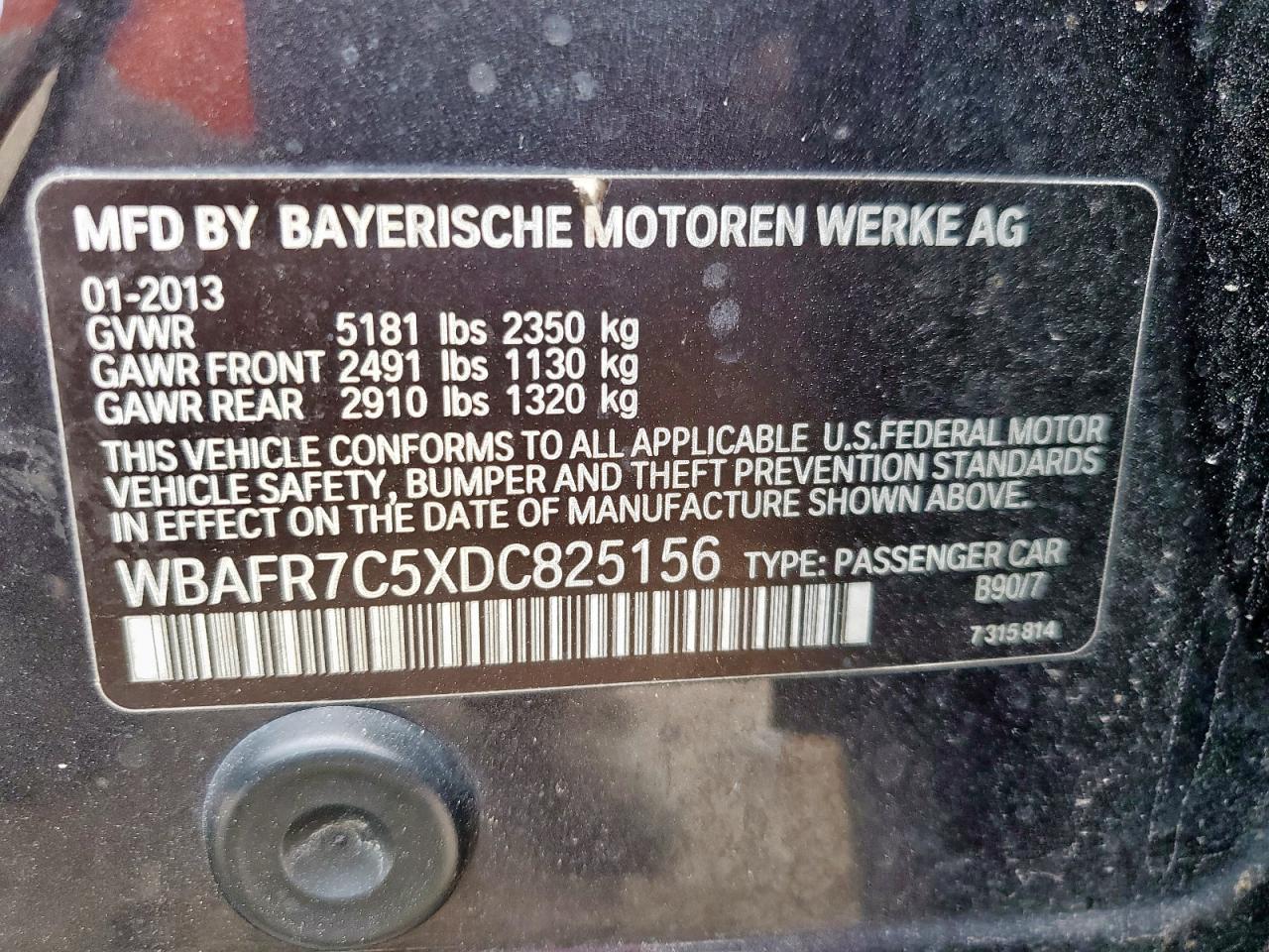 WBAFR7C5XDC825156Финальная ставка