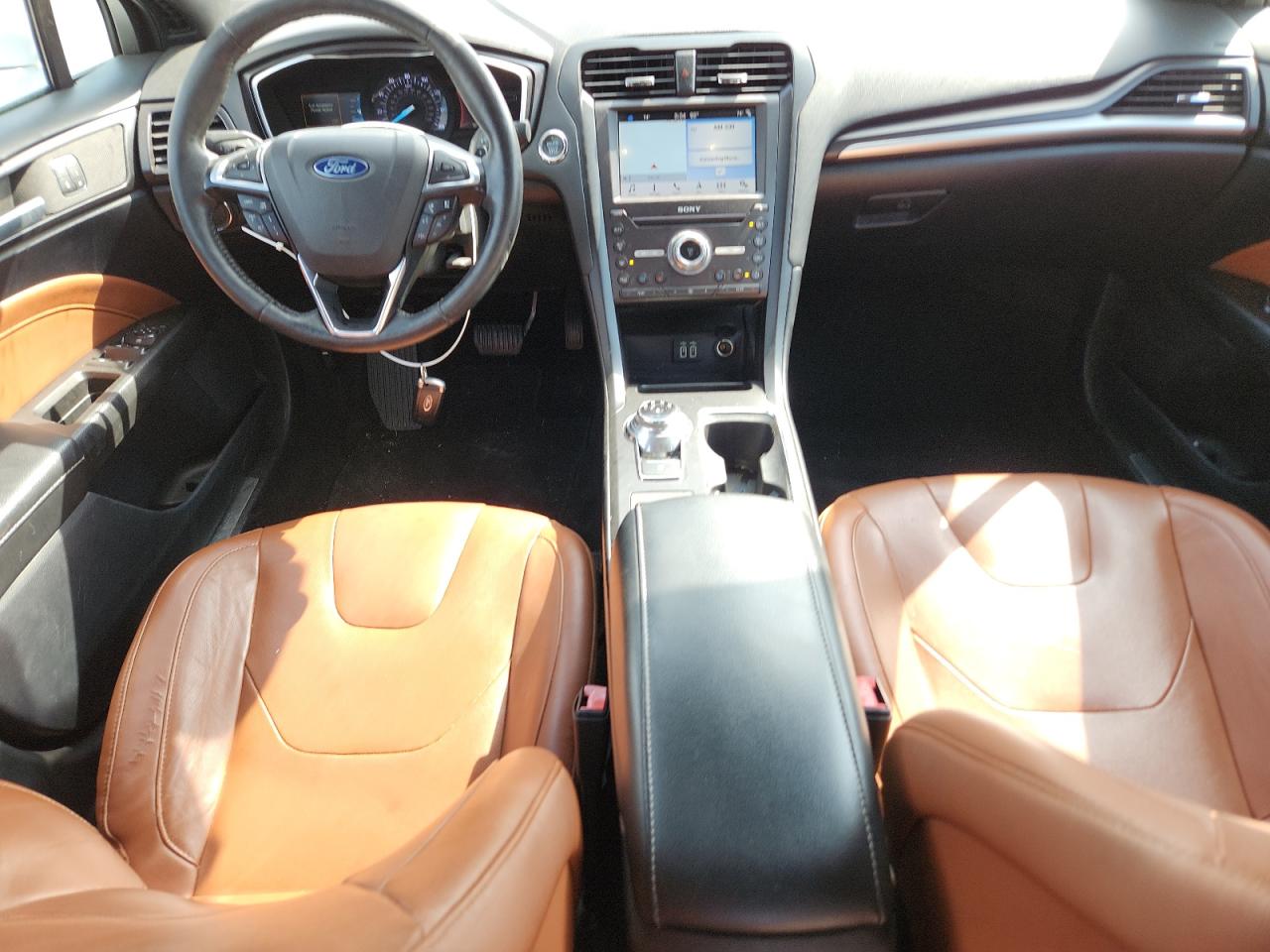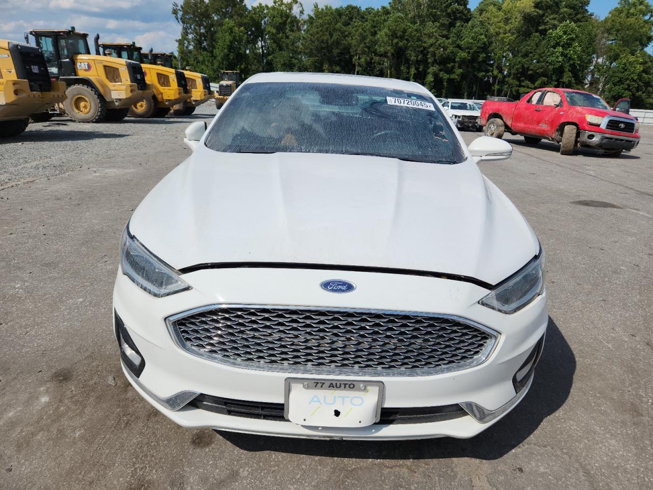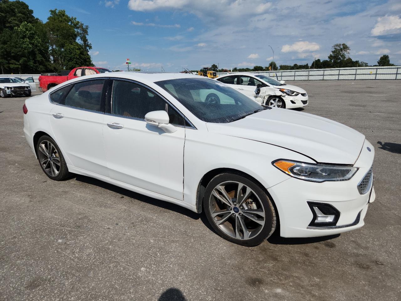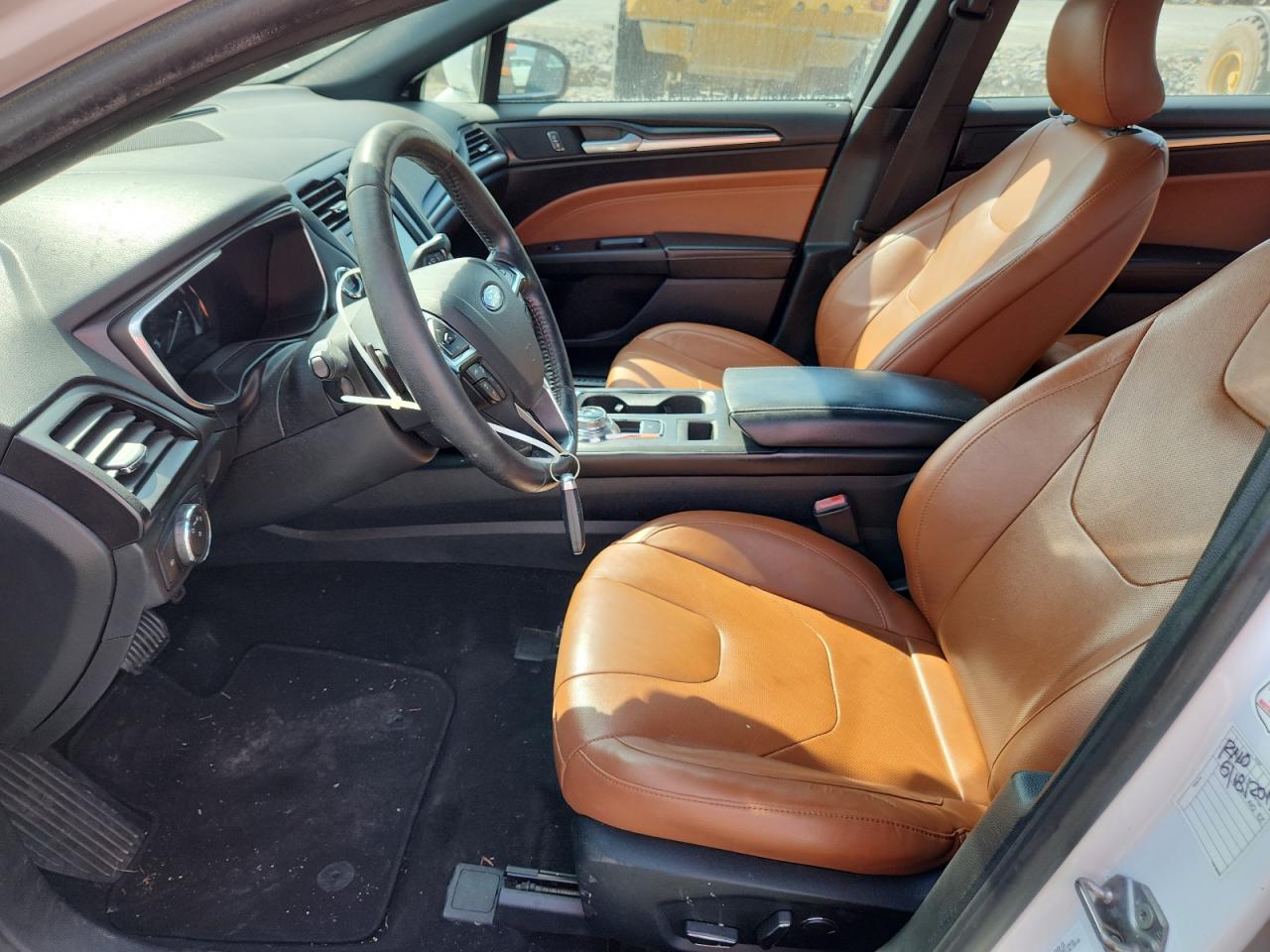 GoodThis is a 2019 Ford Fusion Titanium, white in color. The primary damage is minor dents and scratches. There is no secondary damage visible. The car appears to be drivable, with focus on cosmetic imperfections. The interior features brown leather seats, showing minimal wear. Overall, the vehicle presents well despite the minor cosmetic flaws. The wheels, lights, and glasses appear to be in good condition. Airbags are presumed to be intact. The car start code is DEFAULT.
