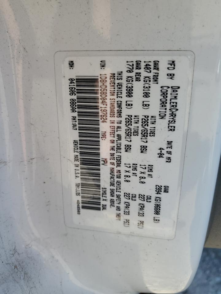 FairThe 2004 Dodge Durango LI is white. It has front-end damage. The car runs and drives, verified. The exterior shows visible damage, the wheels appear to be in good condition. The interior has visible wear and tear. Check for interior damage as well as airbags.