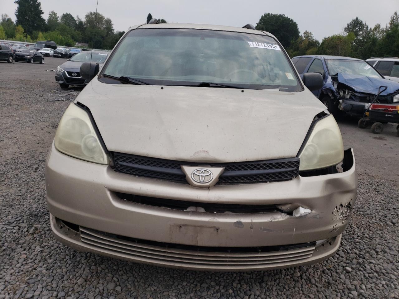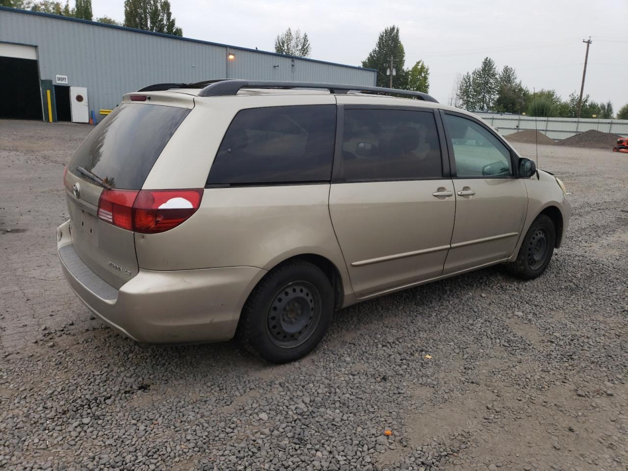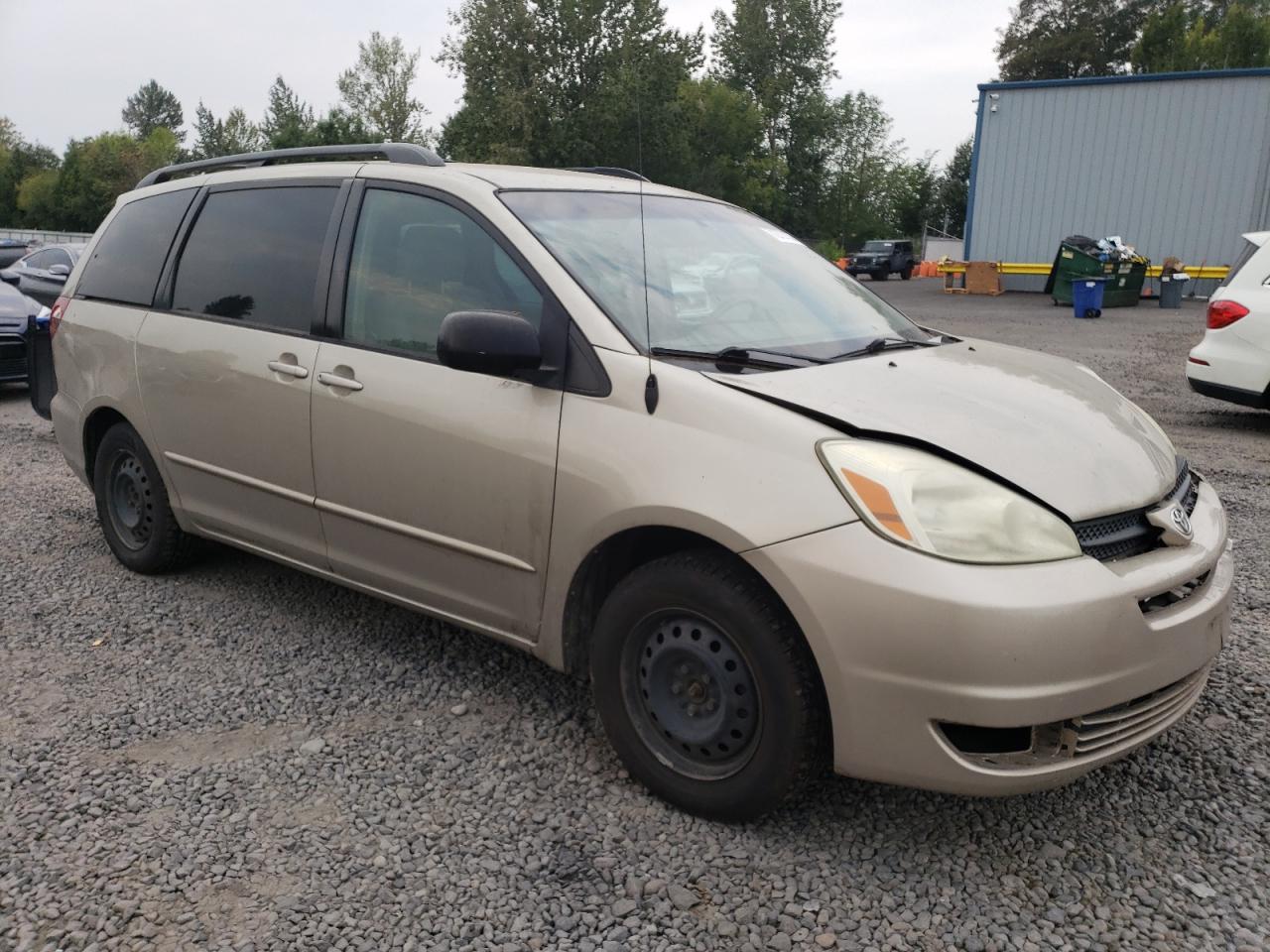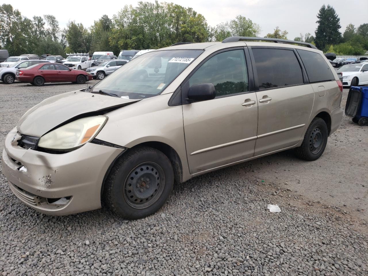 FairThis 2004 Toyota Sienna CE in tan has sustained front-end damage. The car's exterior shows moderate damage, while the interior reflects wear and tear. It is a Run & Drive Verified vehicle. The damage is primarily to the body panels. The lights and glasses appear to be intact, with the wheels are fine. The car is drivable.
