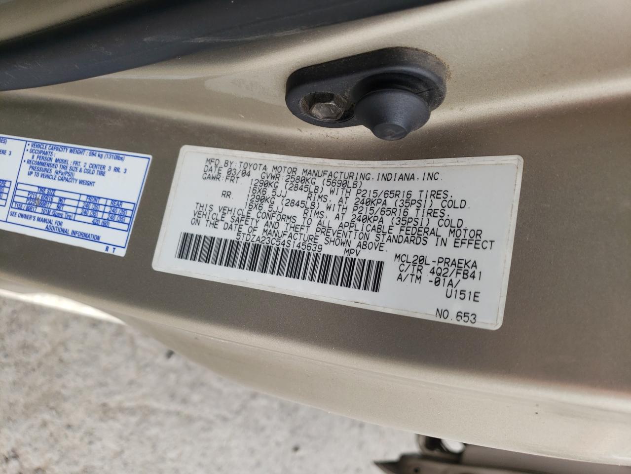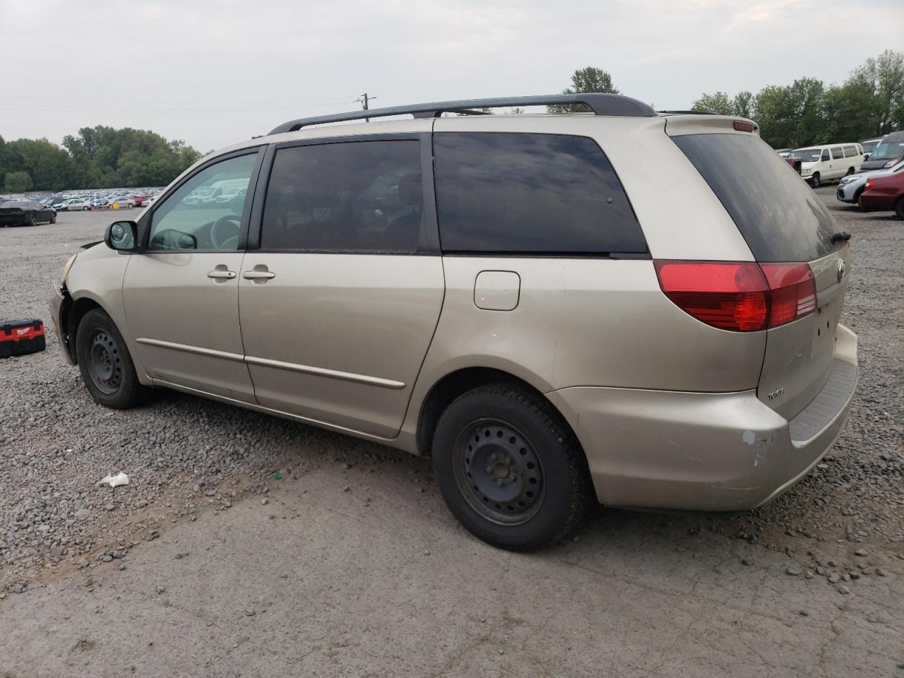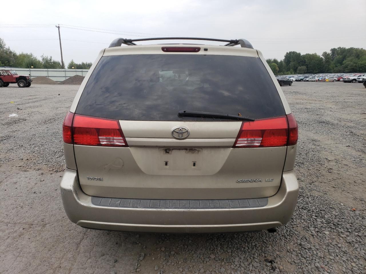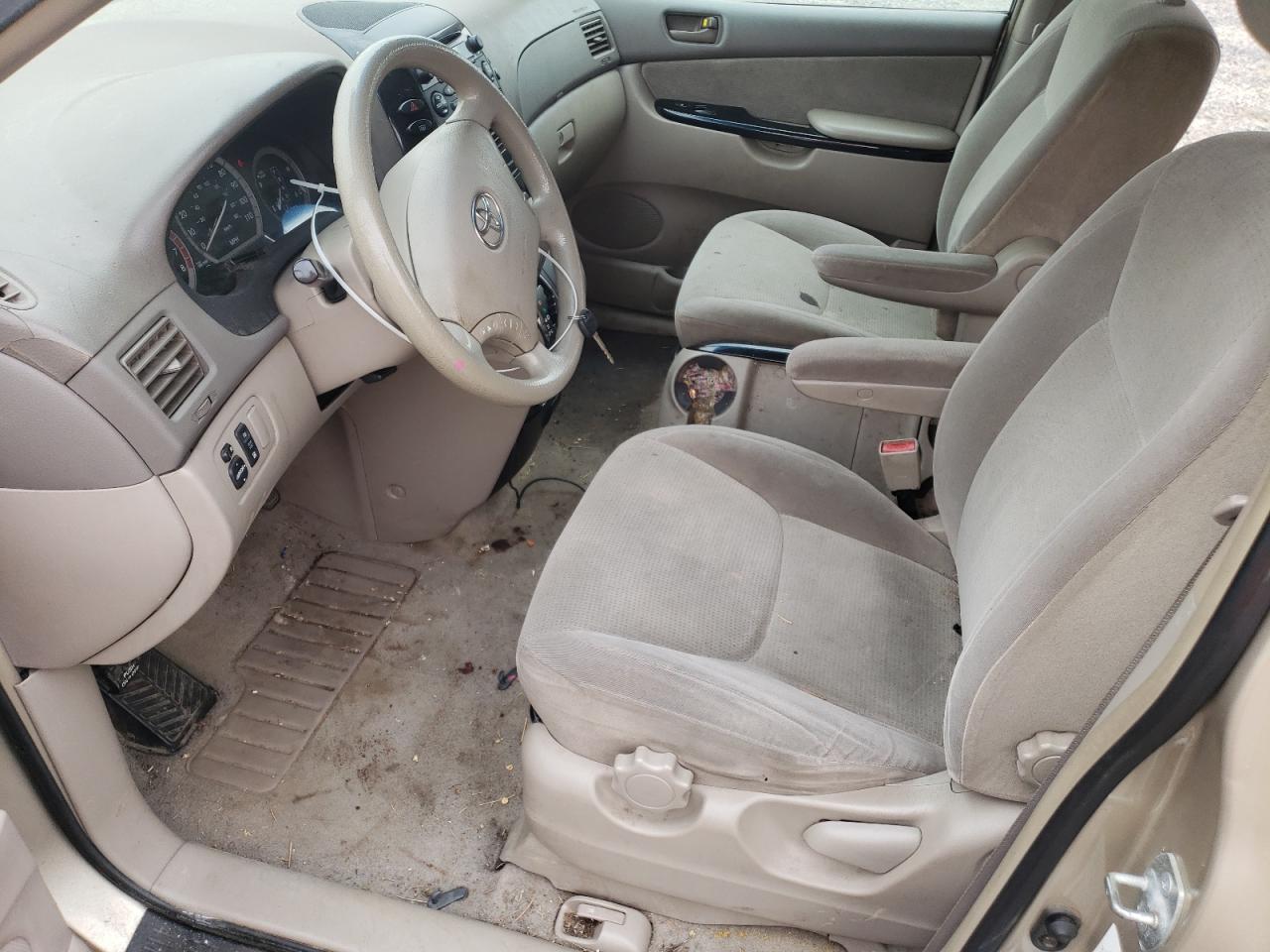 FairThis 2004 Toyota Sienna CE in tan has sustained front-end damage. The car's exterior shows moderate damage, while the interior reflects wear and tear. It is a Run & Drive Verified vehicle. The damage is primarily to the body panels. The lights and glasses appear to be intact, with the wheels are fine. The car is drivable.