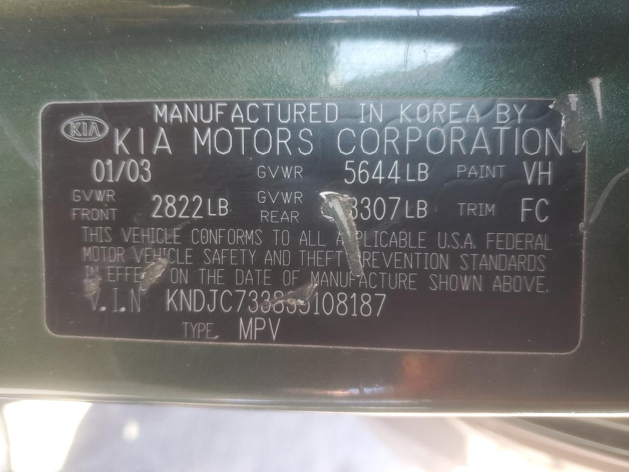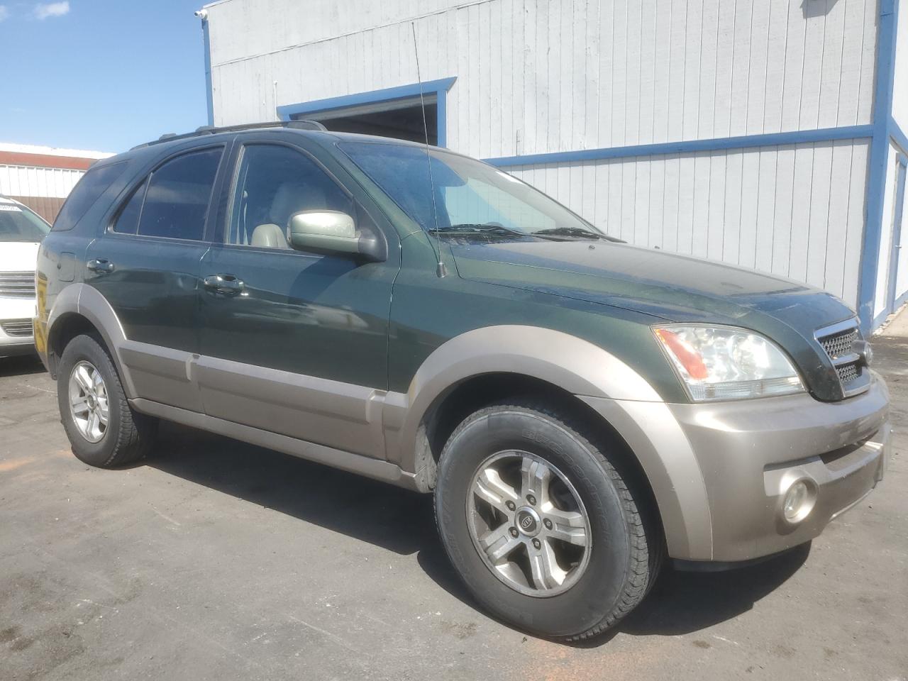 FairThis is a 2003 KIA SORENTO EX. The vehicle has mechanical damage and front end damage. The exterior is green. The car's overall condition is poor, with visible damage. Interior condition is fair with some signs of wear and tear. The vehicle has some mechanical issues. Overall Exterior Condition is fair. The car is not drivable and requires considerable repair.