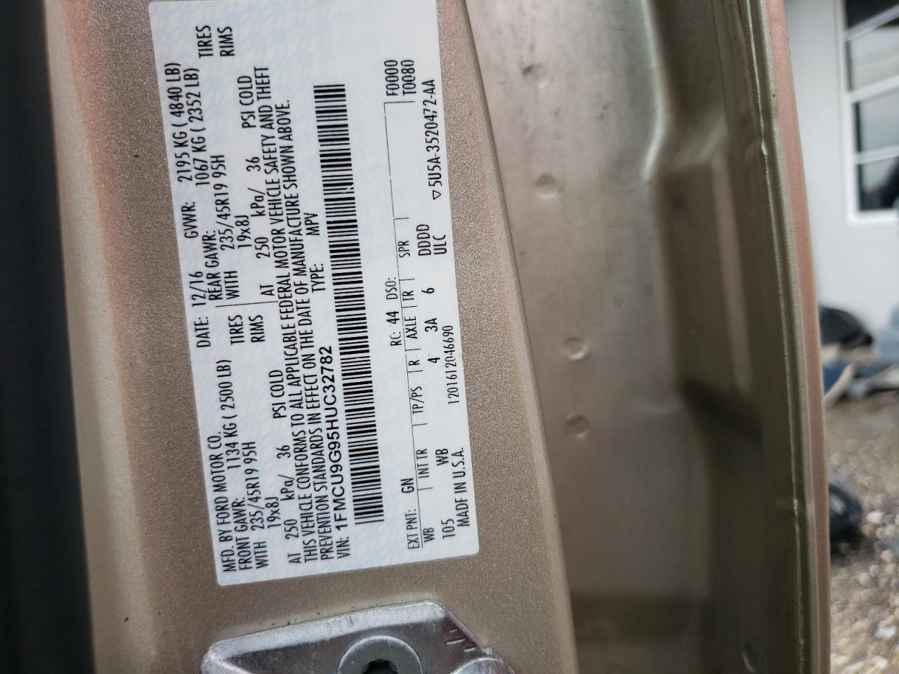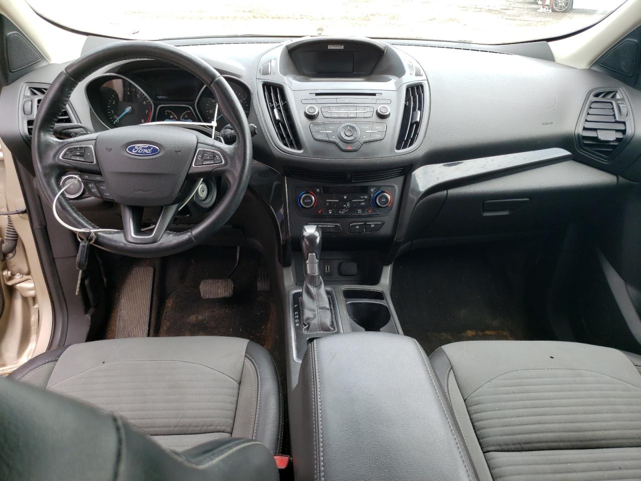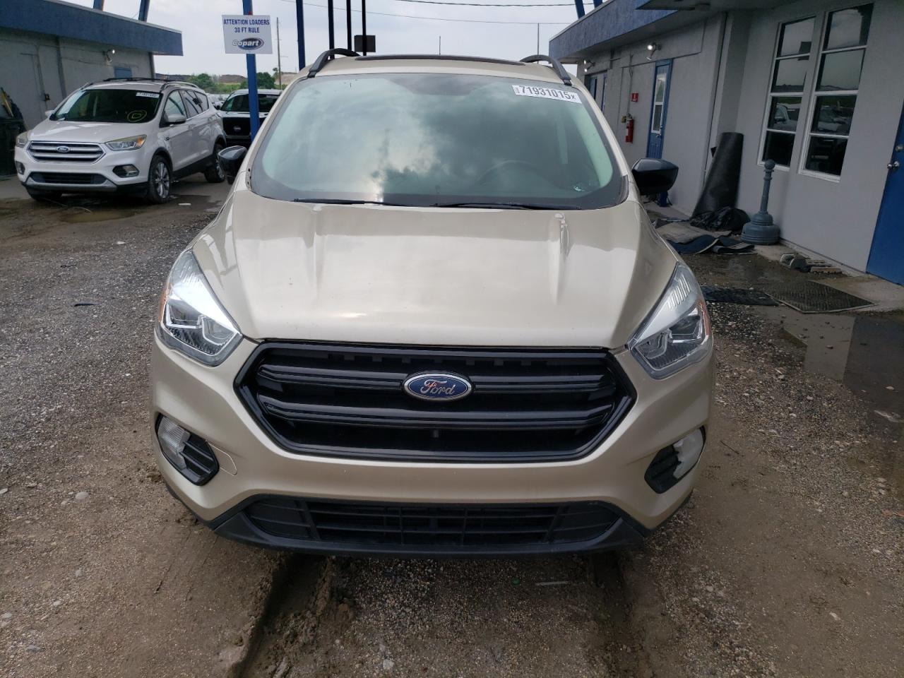 GoodThis is a 2017 Ford Escape SE, tan in color, and classified as Run & Drive Verified. The primary damage is to the front end, with no secondary damage noted. The vehicle has black wheels. The car's exterior presents with moderate visible damage, particularly at the front end, which requires repair, but it remains drivable. The interior shows minor wear, consistent with age and mileage. Airbags status not determined. The car seems to have drivable engine condition