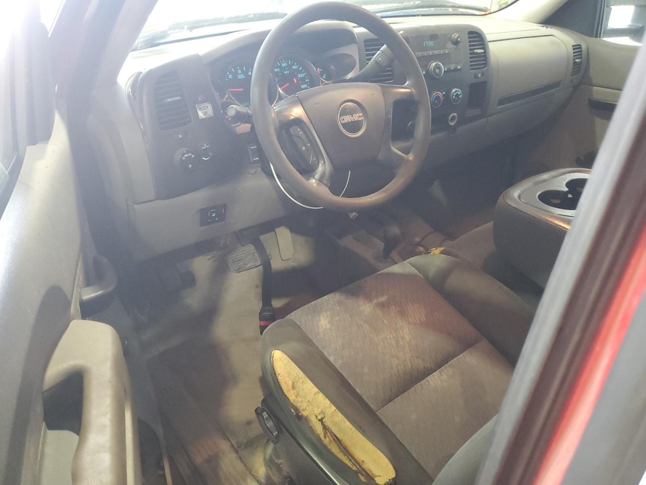The vehicle exhibits moderate visible damage. The body panels show signs of wear and tear, with significant rust on the dump bed. The interior has noticeable wear and tear, including damage to the seats. The wheels and lights appear to be in acceptable condition, with no apparent damage.