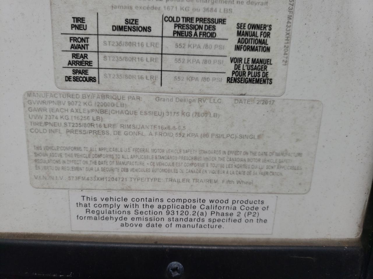 FairThis is a GRAND DESIGN MOMENTUM 2017. The vehicle's primary damage is all over the exterior, and there is no secondary damage reported. The car is white. Based on the images, the vehicle has damage. The wheels appear to be intact. The glasses seem to be fine. The lights appear to be functional. Interior condition is Good. There is no information regarding airbags. The vehicle is likely drivable, but requires repairs.