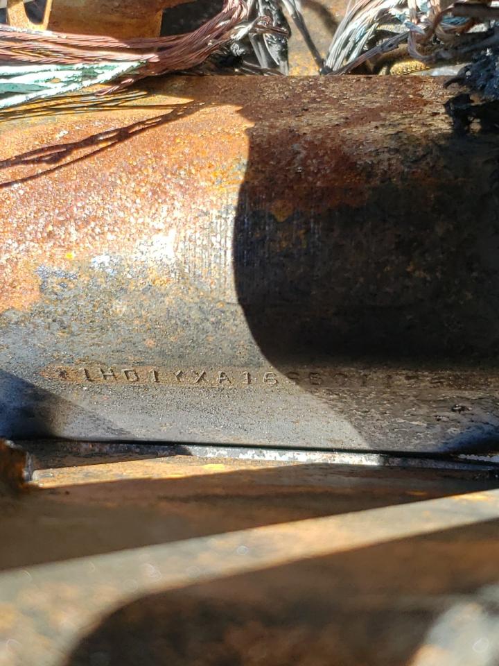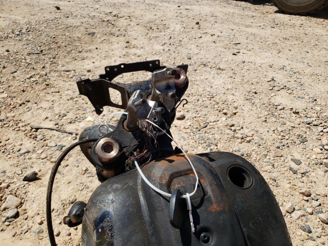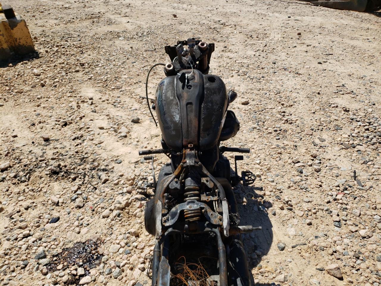 The motorcycle has sustained extensive fire damage, resulting in a complete loss of body components. The engine and frame are severely damaged. There is no apparent secondary damage.