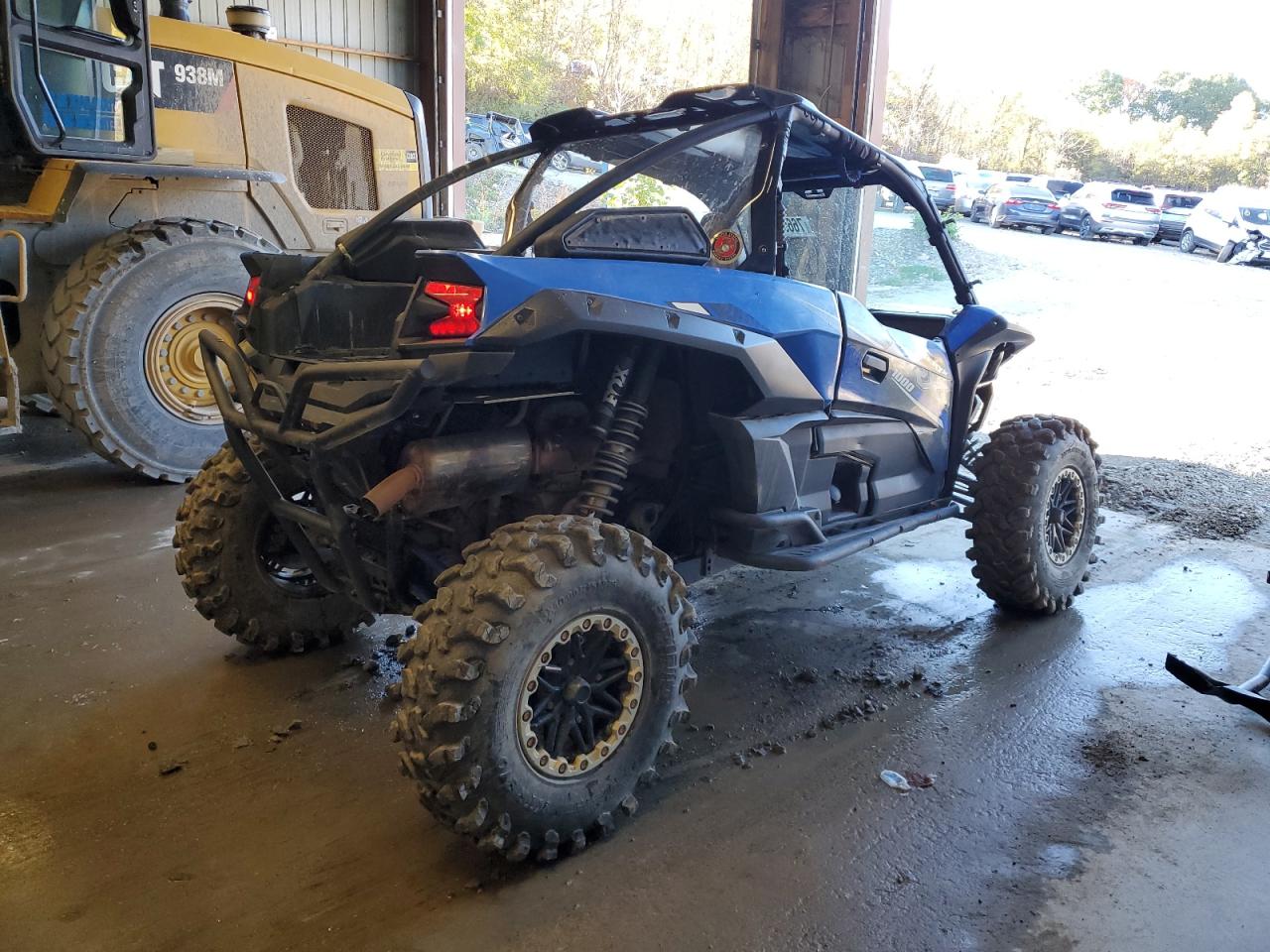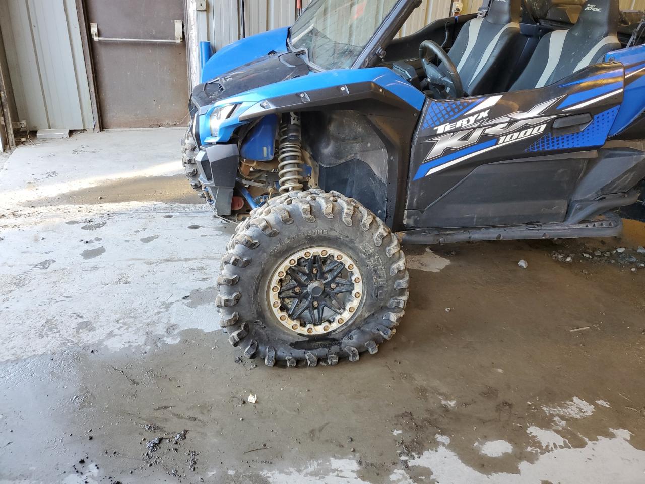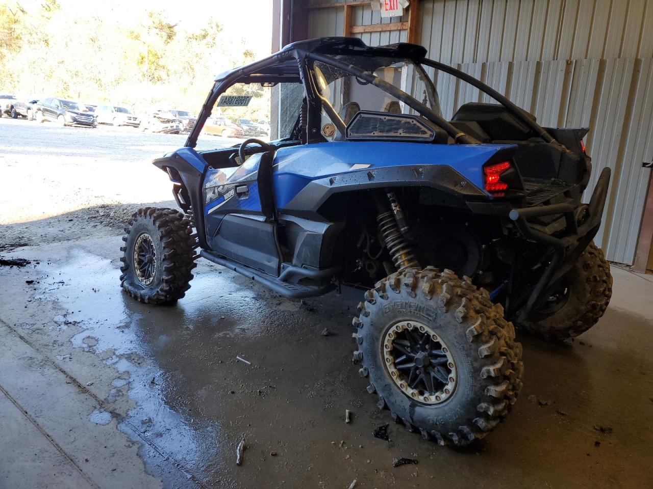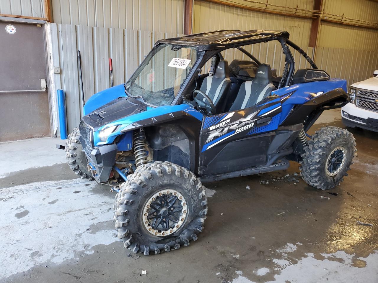 GoodThe KAWASAKI KRF 1000 A 2021, in a striking blue, shows signs of front-end damage. Despite this, the vehicle appears drivable, with no significant damage to the wheels or engine. The interior seems to be in very good condition. This off-road vehicle presents a solid base for restoration or repair, suitable for enthusiasts looking for a project.
