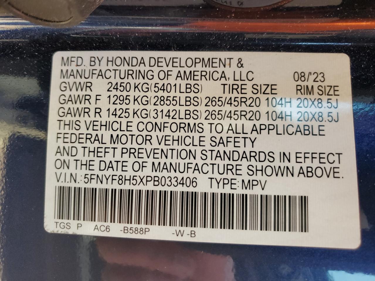 5FNYF8H5XPB033406Финальная ставка