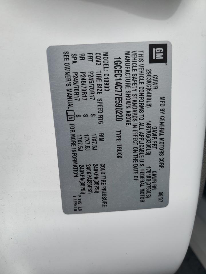 FairThe white 2007 CHEVROLET SILVERADO C1500 presents with significant front-end damage, impacting the body panels. The vehicle's exterior shows moderate damage, while the interior appears to be in good condition. The wheels and lights appear to be intact. The airbags have been deployed. This truck requires considerable repair.