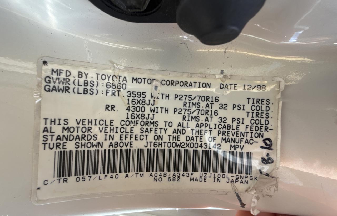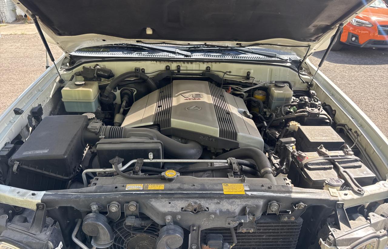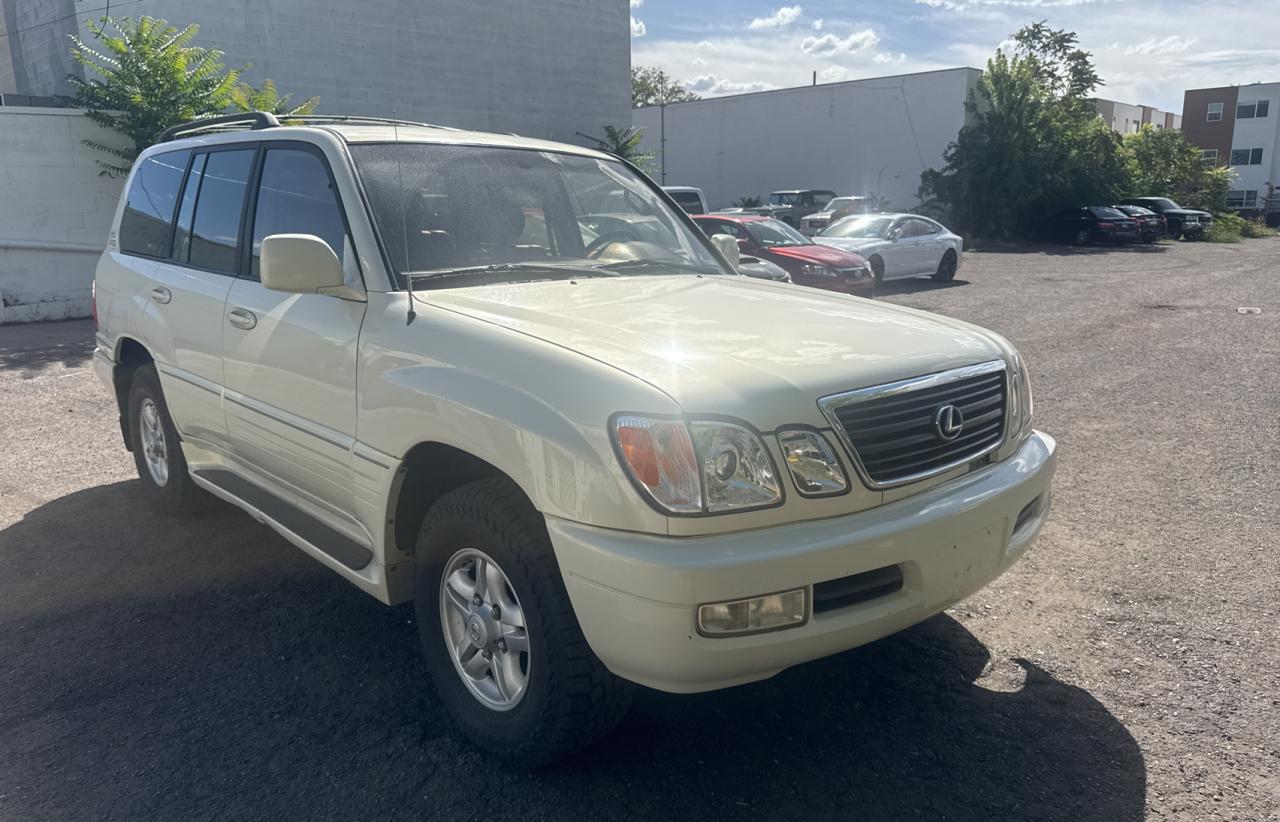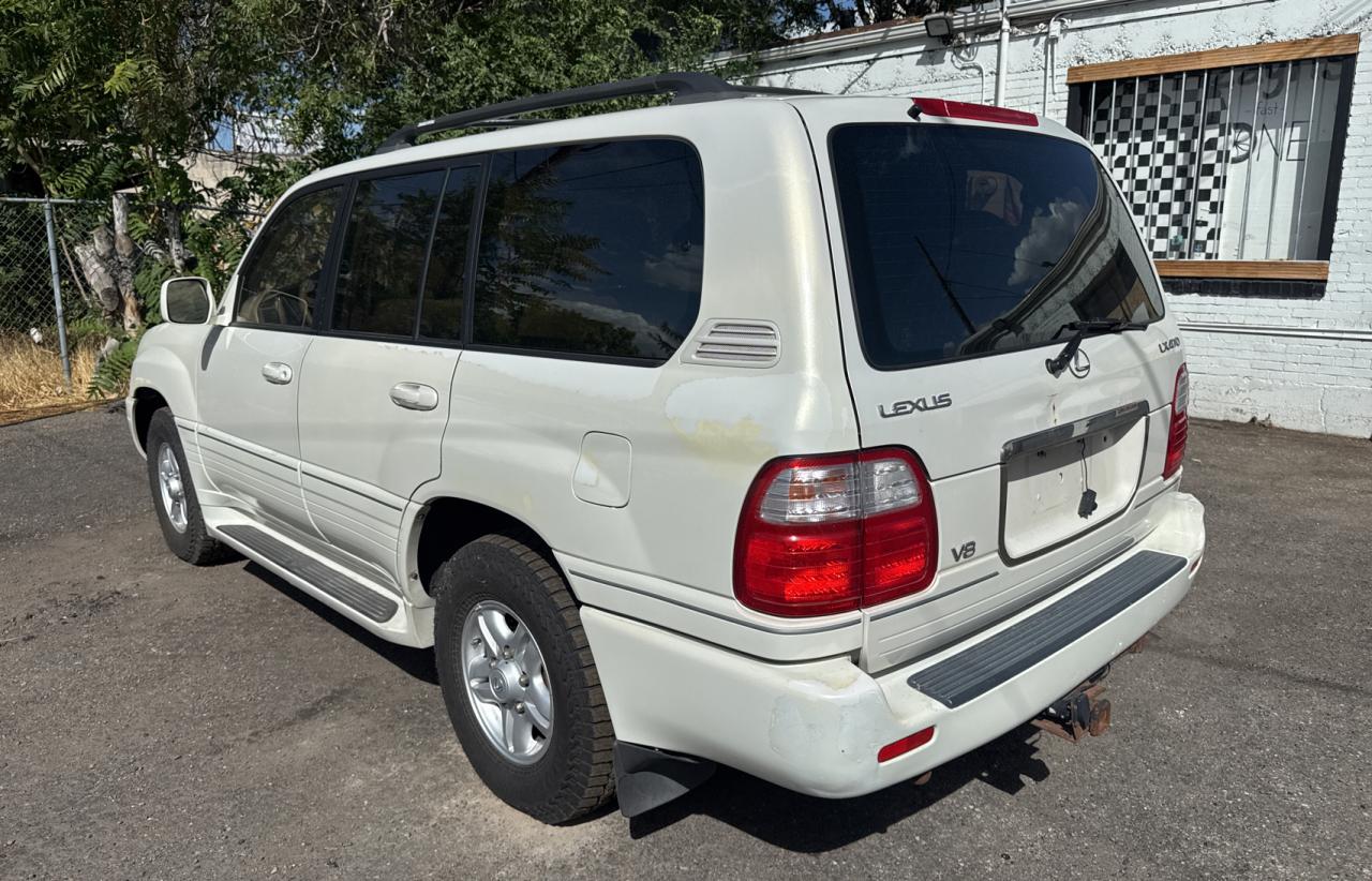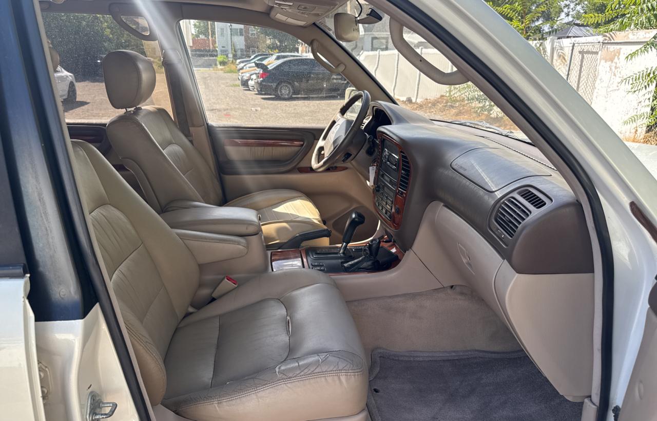 GoodThe 1999 Lexus LX 470 exhibits normal wear and tear, with a white exterior. This SUV, despite its age, appears to be in relatively good condition, with a run and drive verified status. The interior shows minimal signs of damage. The vehicle's wheels, lights, and glasses are intact and in a good shape.