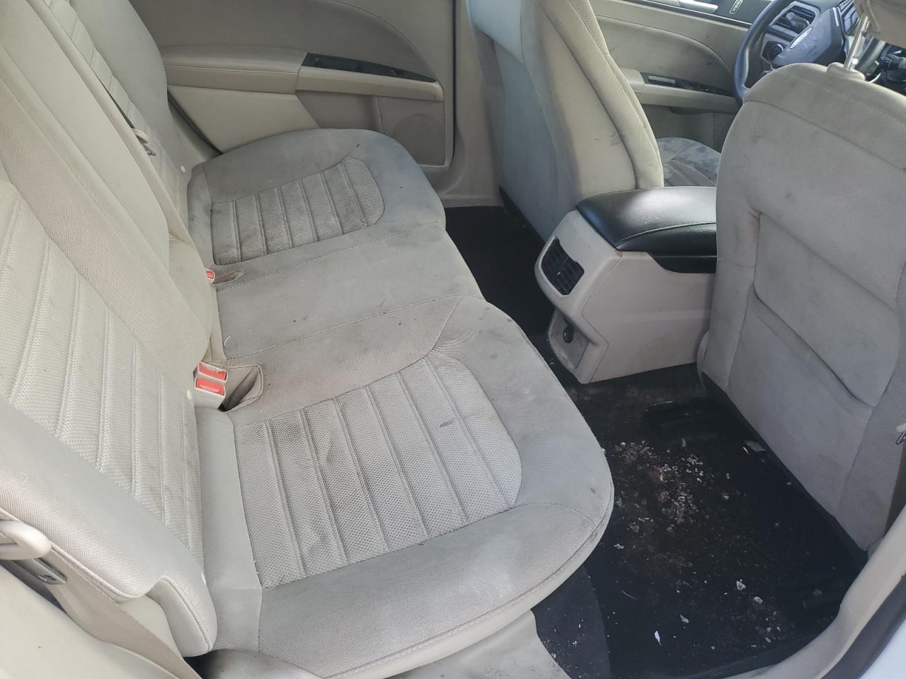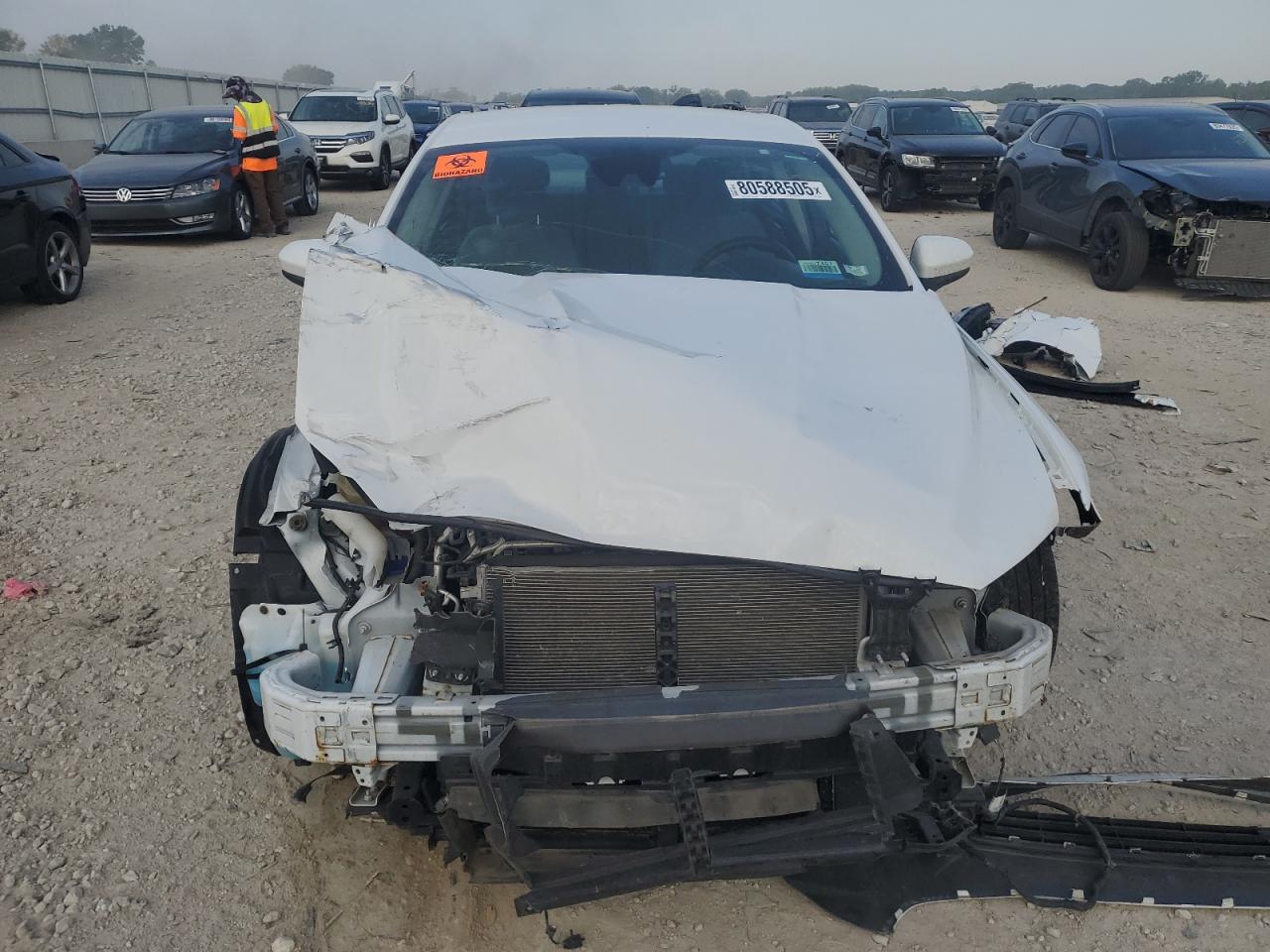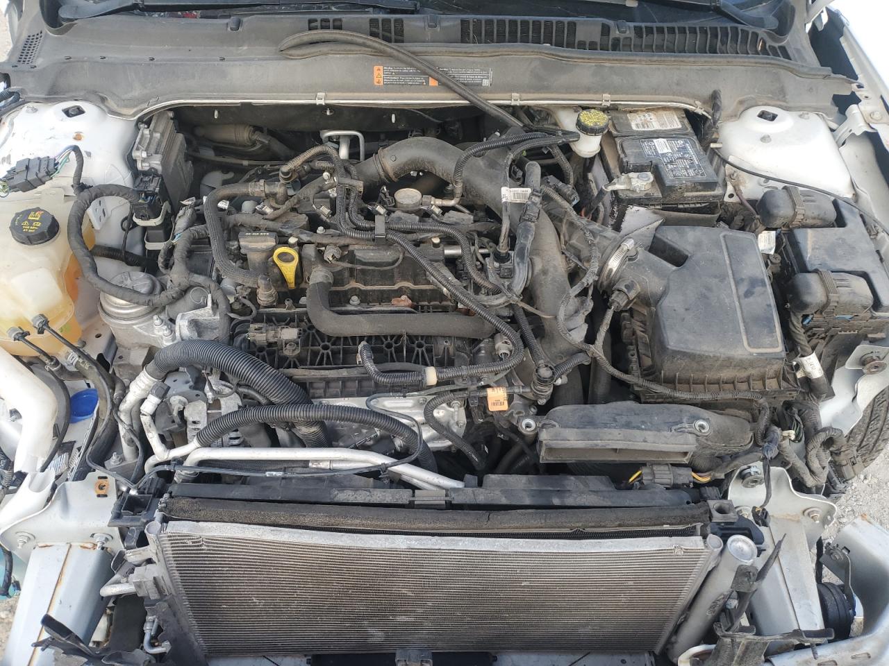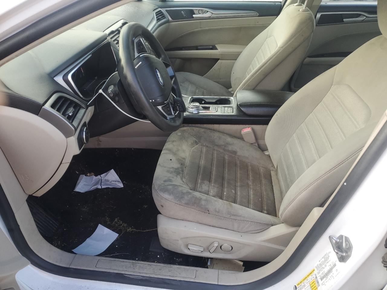 FairThis white 2020 Ford Fusion SE shows significant front-end damage, indicating a collision. The body panels are affected. The interior shows wear and tear. The car is a Run & Drive Verified vehicle. The damage might require considerable repair to be drivable.