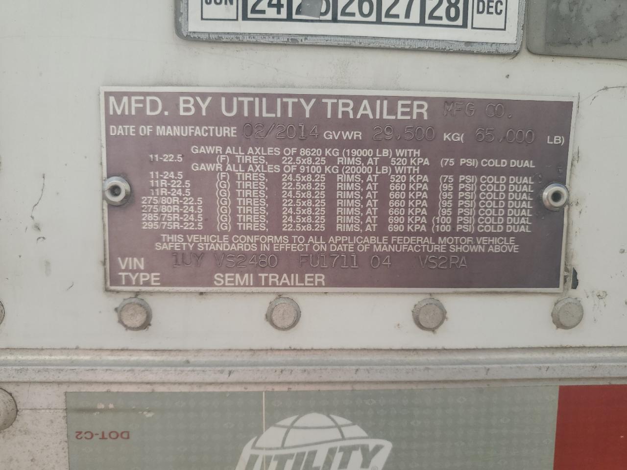 FairThis is a 2015 UTILITY VS2RA semi-trailer, white in color, with a DEFAULT start code. The trailer shows signs of normal wear and tear, including minor dents and scratches. The vehicle's exterior condition is rated as 'Fair' due to moderate visible damage. The interior condition appears to be 'Good'.