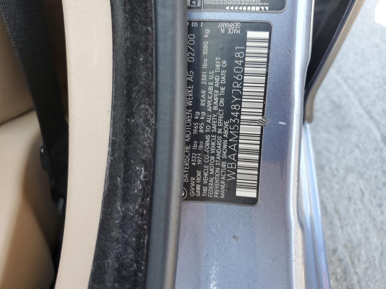 FairThis is a 2000 BMW 328i, exhibiting side impact damage. The vehicle's blue exterior shows signs of wear and tear. The interior presents moderate damage and wear, including worn seats. The car is confirmed to Run & Drive Verified.