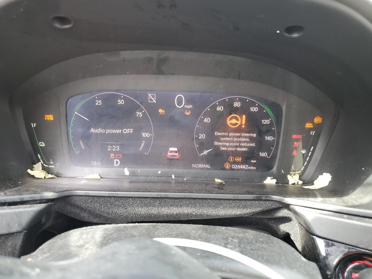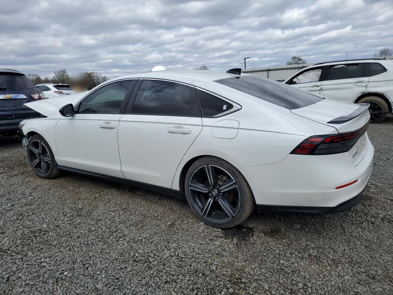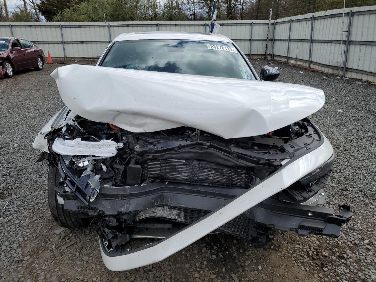 FairThis is a 2023 HONDA ACCORD HYB, white in color, with significant front-end and side damage. The vehicle's front end exhibits severe damage, impacting the bumper, lights, and likely the mechanical components. The side also shows damage. The interior shows signs of airbag deployment and potential damage. The wheels appear to be intact, but the overall condition is poor. The car is not drivable.