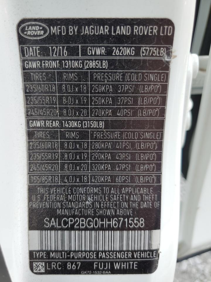 FairThis is a white 2017 Land Rover Discovery with significant damage. The primary damage is to the rear end, with secondary damage to the front end. The vehicle's body panels are extensively damaged, indicating a Body Vehicle Damage Category. The interior condition is good, with normal wear and tear. The wheels and glasses appear to be intact. The car is drivable, but in need of considerable repair.