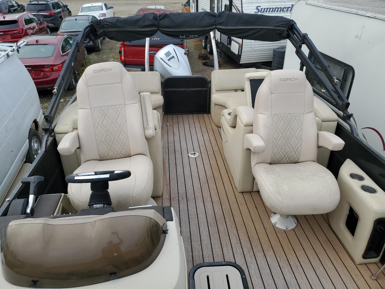 FairThe boat appears to have suffered front-end damage. The pontoons and possibly the deck structure sustained damage. The color is black. This is a MISTY HARBOR BOAT 2018, it appears to be a pontoon boat. The interior appears to be in good condition with some wear and tear. The boat's condition overall is fair, the exterior damage is present in multiple panels. The pontoon boat is drivable. Overall Interior Condition is Good with minimal visible damage.