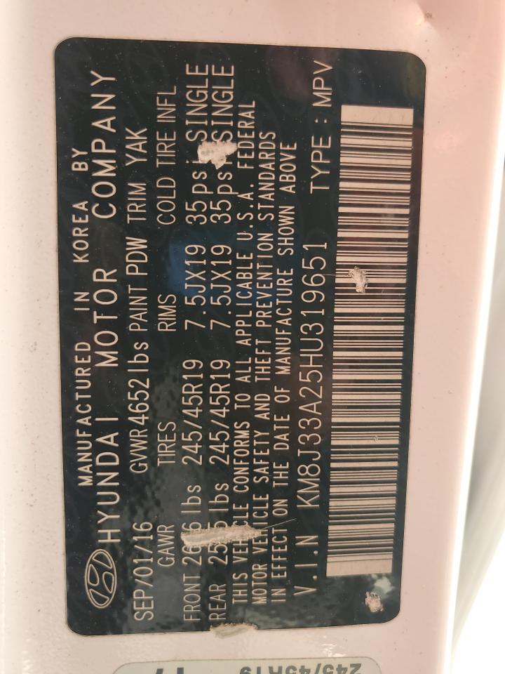 Good2017 HYUNDAI TUCSON LIM with FRONT END damage and no secondary damages. Vehicle Starts. The car is white. Overall, the vehicle shows signs of use with some wear and tear. Interior condition is assessed as good. The vehicle's exterior condition is good. Wheels and lights appear to be intact. Glasses are in good condition.