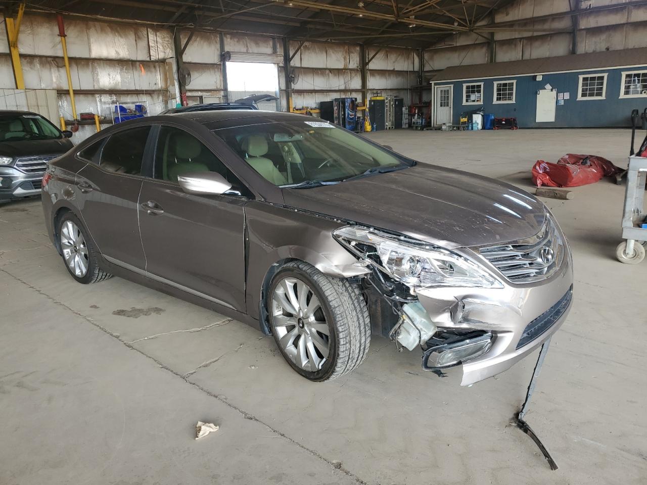 FairThis is a 2013 Hyundai Azera GLS with front-end damage. The primary damage is to the front end, while there is no secondary damage. The car is tan in color and has a Run & Drive Verified status. The interior shows wear, but no significant damages are apparent. The airbags appear to be intact. The car's wheels, lights, and glasses are in a usable state.