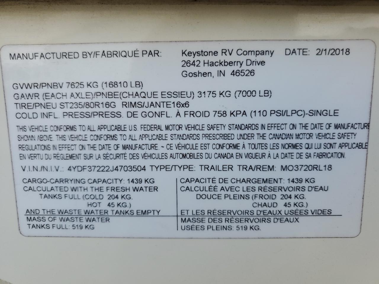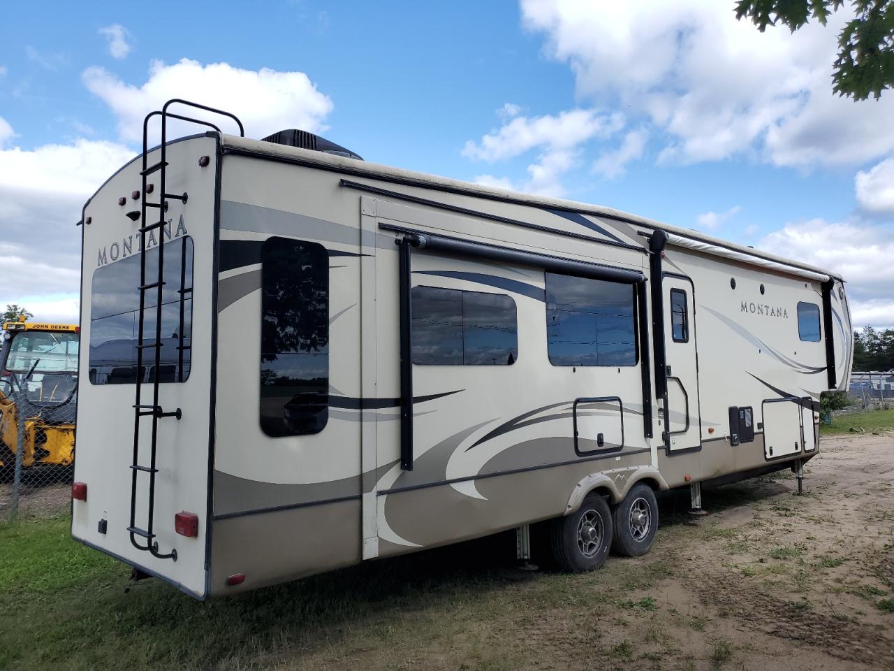 GoodThe 2018 KEYSTONE MONTANA RV, presented in cream color, exhibits minor damage, primarily to the undercarriage, with some minor dents and scratches. The wheels and lights appear to be in good condition. The interior shows minor wear and tear. Airbags are not specified. Overall, the RV is in good condition and drivable.