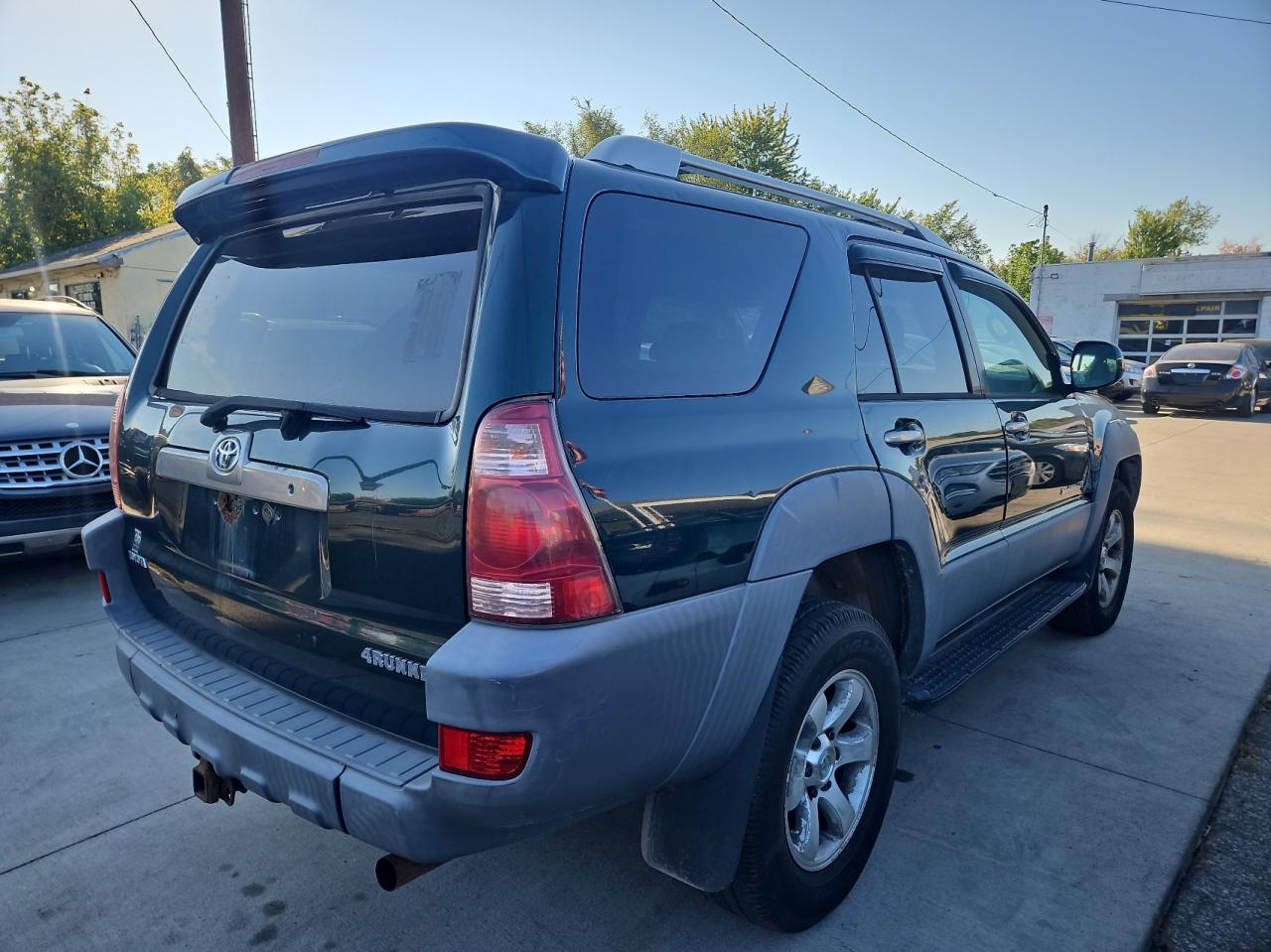 GoodThe 2003 TOYOTA 4RUNNER SR5 is a green SUV exhibiting normal wear with minor dents and scratches, indicating it has been driven and enjoyed. The vehicle is confirmed to Run & Drive Verified status. The exterior presents minor/moderate cosmetic imperfections, with the wheels, lights, and glasses appearing to be in serviceable condition. Interior shows moderate visible damage consistent with age and mileage. Airbags status is not visible. Damage Summary: * **Exterior:** Minor dents and scratches, normal wear. * **Interior:** moderate visible damage. Overall, the car is in good condition, drivable with expected wear for its age and mileage. Vehicle Damage Category is Body.
