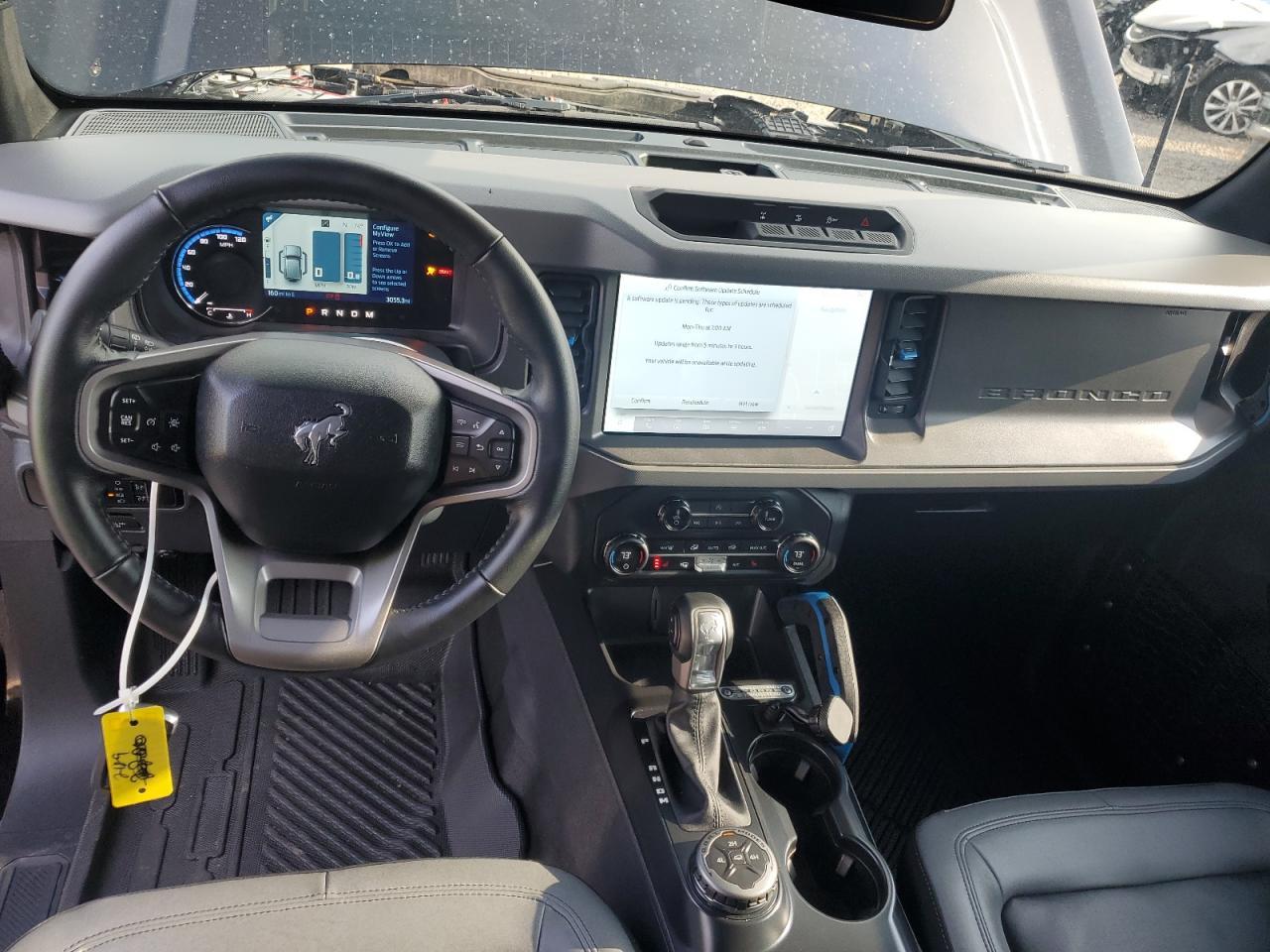 GoodThis is a 2024 Ford Bronco BLA with black exterior. The vehicle has sustained front-end damage and has a 'Run & Drive Verified' status. The wheels, lights, and glasses appear to be in good condition. The interior shows minimal wear and tear. Summary: The car exhibits moderate visible damage primarily at the front, classified as 'Body' damage. The overall exterior condition is 'Good,' while the interior condition is 'Very Good.' The overall state is 'Fair,' indicating drivability with the need for repairs. Search Query: Ford Bronco BLA 2024, black exterior, front-end damage, body damage, drivable, repairable, overall condition good, interior very good, fair condition, damaged car.