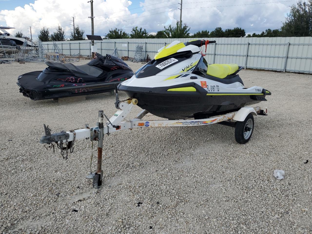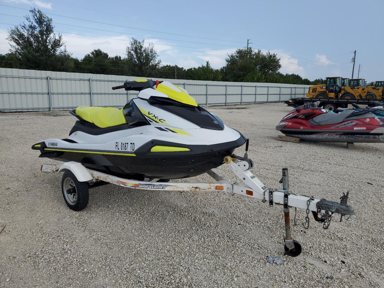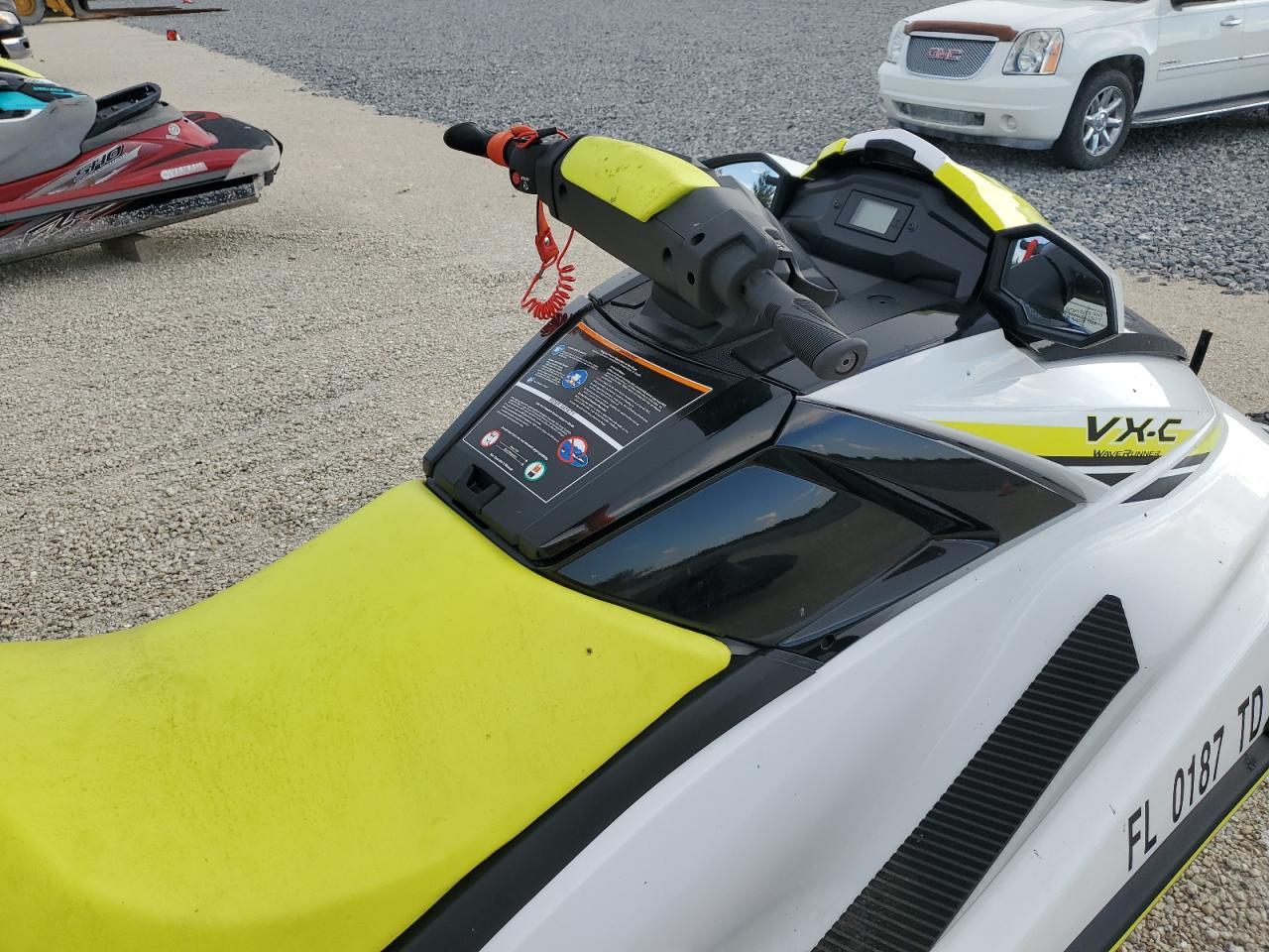 GoodThis is a 2022 YAMAHA VX-C WaveRunner. The primary damage is water/flood, with no secondary damage. The exterior is white. The jet ski shows signs of use but appears to be in fair condition overall. The interior seems to be well-maintained. The jet ski has a few hours of use, as indicated by the display. The body has some cosmetic imperfections, but it appears to be drivable. The jet ski has yellow seat and design elements. The overall condition is fair, with moderate visible damage.