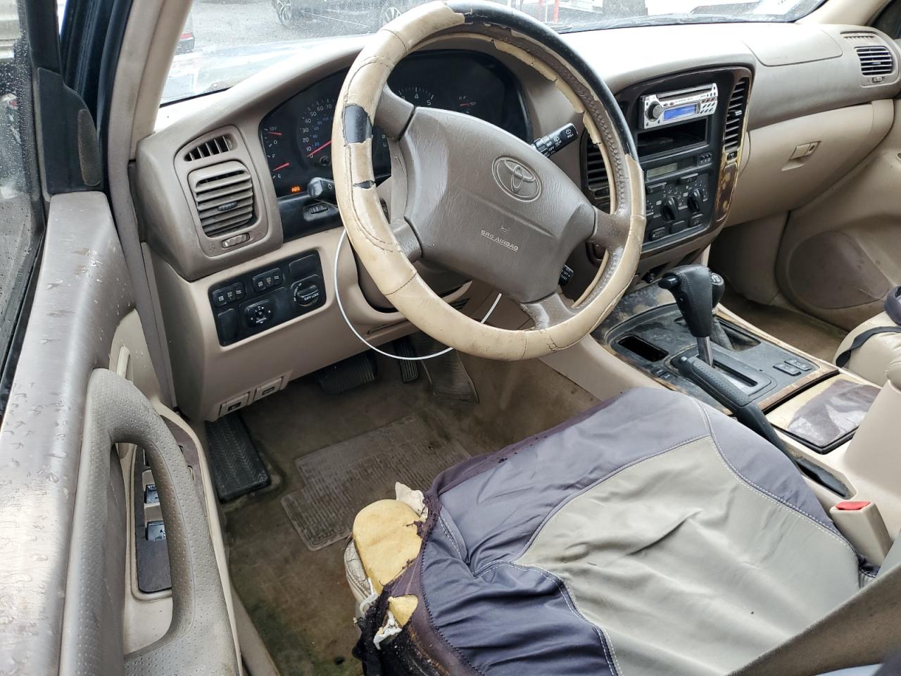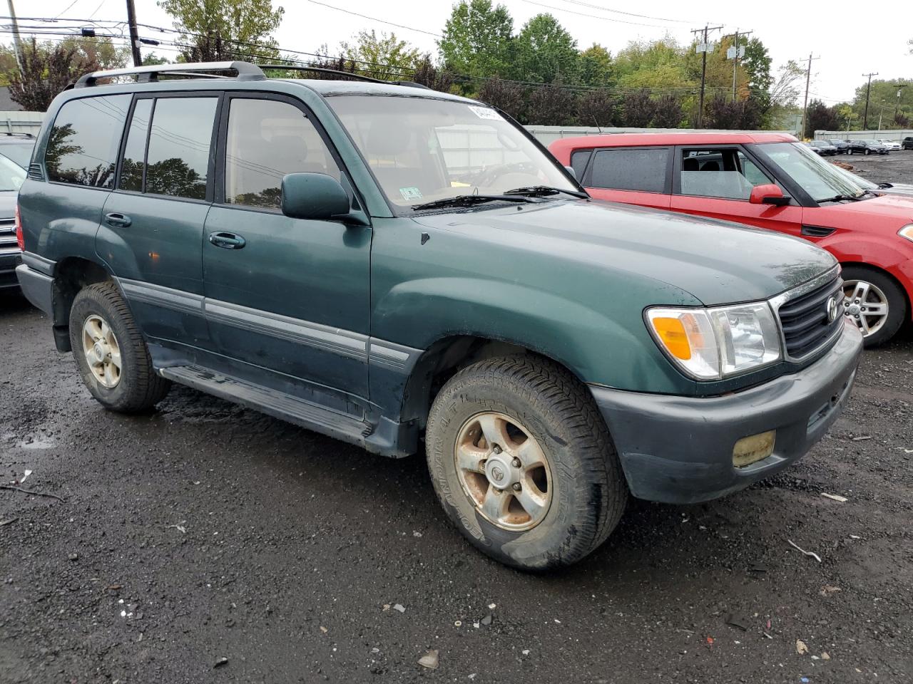 GoodThis 1998 TOYOTA LAND CRUISER exhibits cosmetic and body damage, with visible scratches and dents. The exterior shows signs of wear, but the wheels and glass appear to be intact. The interior has moderate damage, and the car starts and drives. The green color remains visible despite the exterior imperfections.