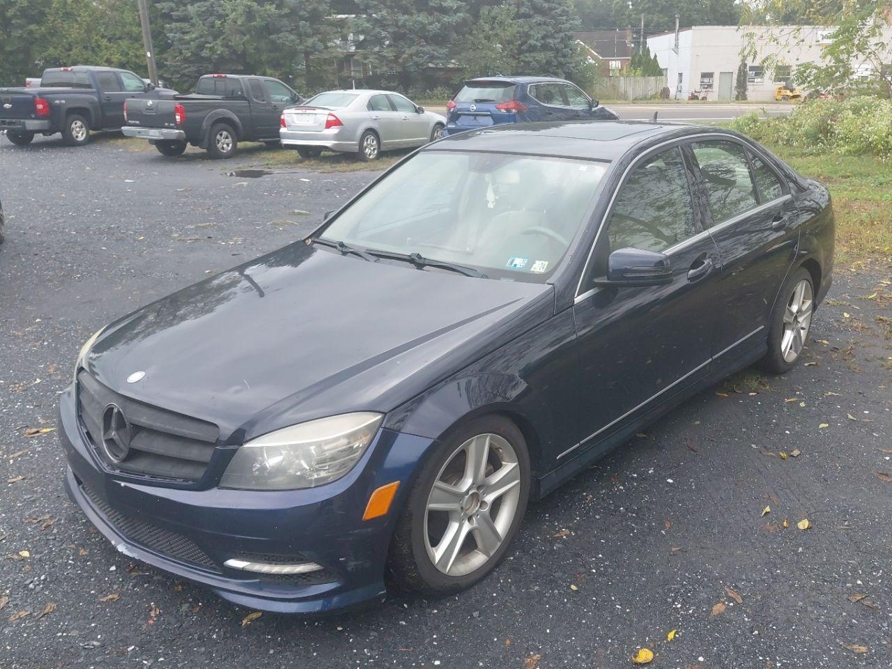 Fair2011 MERCEDES-BENZ C 300 4MATIC with blue exterior. Vehicle Damage Category: Body and Mechanical. The car starts and runs, verified as Run & Drive. Damage is primarily to the front end. Interior condition is good with some wear. A summary of damages and overall state, including synonyms for search query optimization.