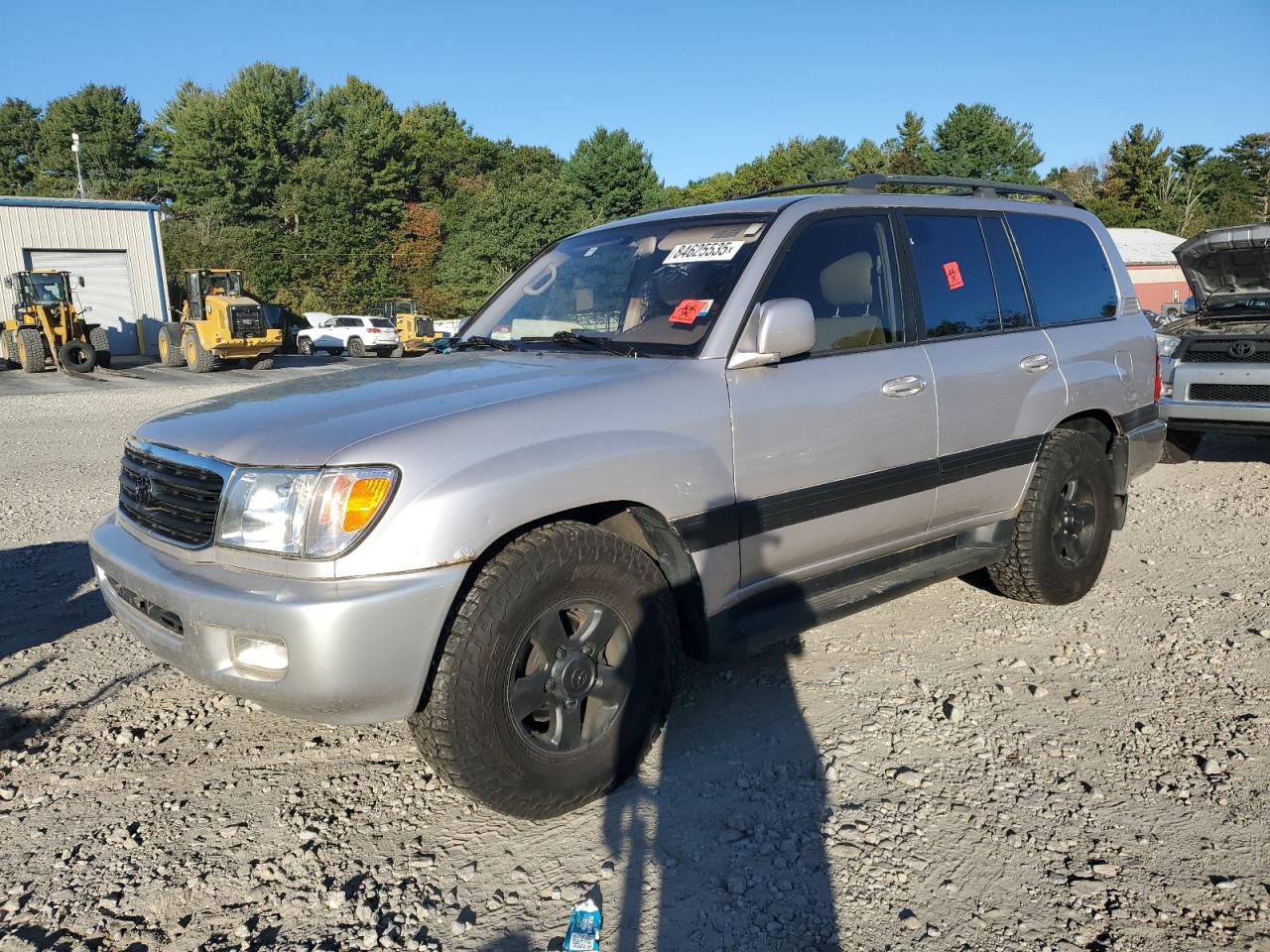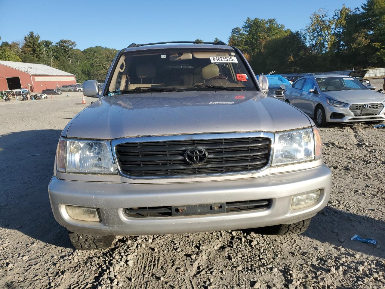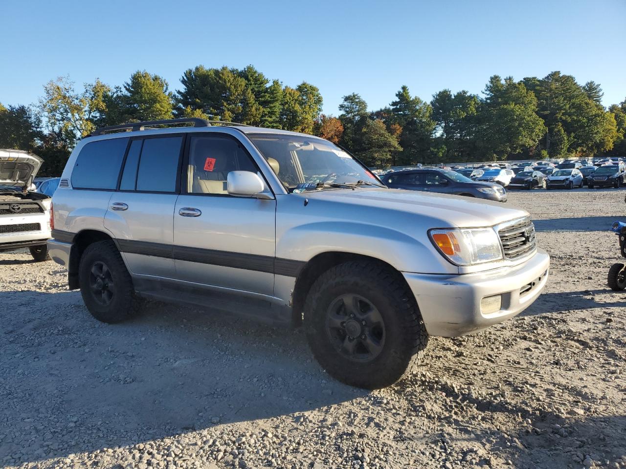 GoodSilver 1999 Toyota Land Cruiser with minor cosmetic damage and scratches. Run & Drive Verified. Interior shows normal wear, with no significant issues. Wheels and glasses appear to be in good condition. The vehicle is drivable with no mechanical problems. No airbag issues are visible.