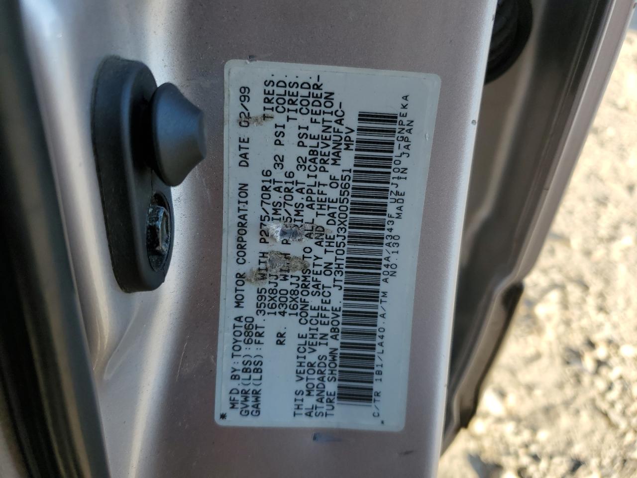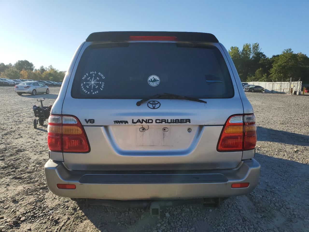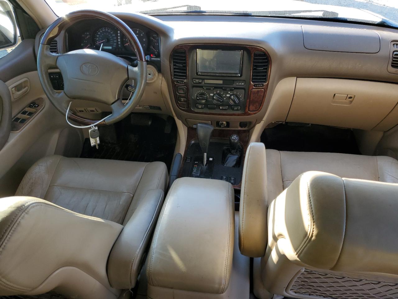 GoodSilver 1999 Toyota Land Cruiser with minor cosmetic damage and scratches. Run & Drive Verified. Interior shows normal wear, with no significant issues. Wheels and glasses appear to be in good condition. The vehicle is drivable with no mechanical problems. No airbag issues are visible.