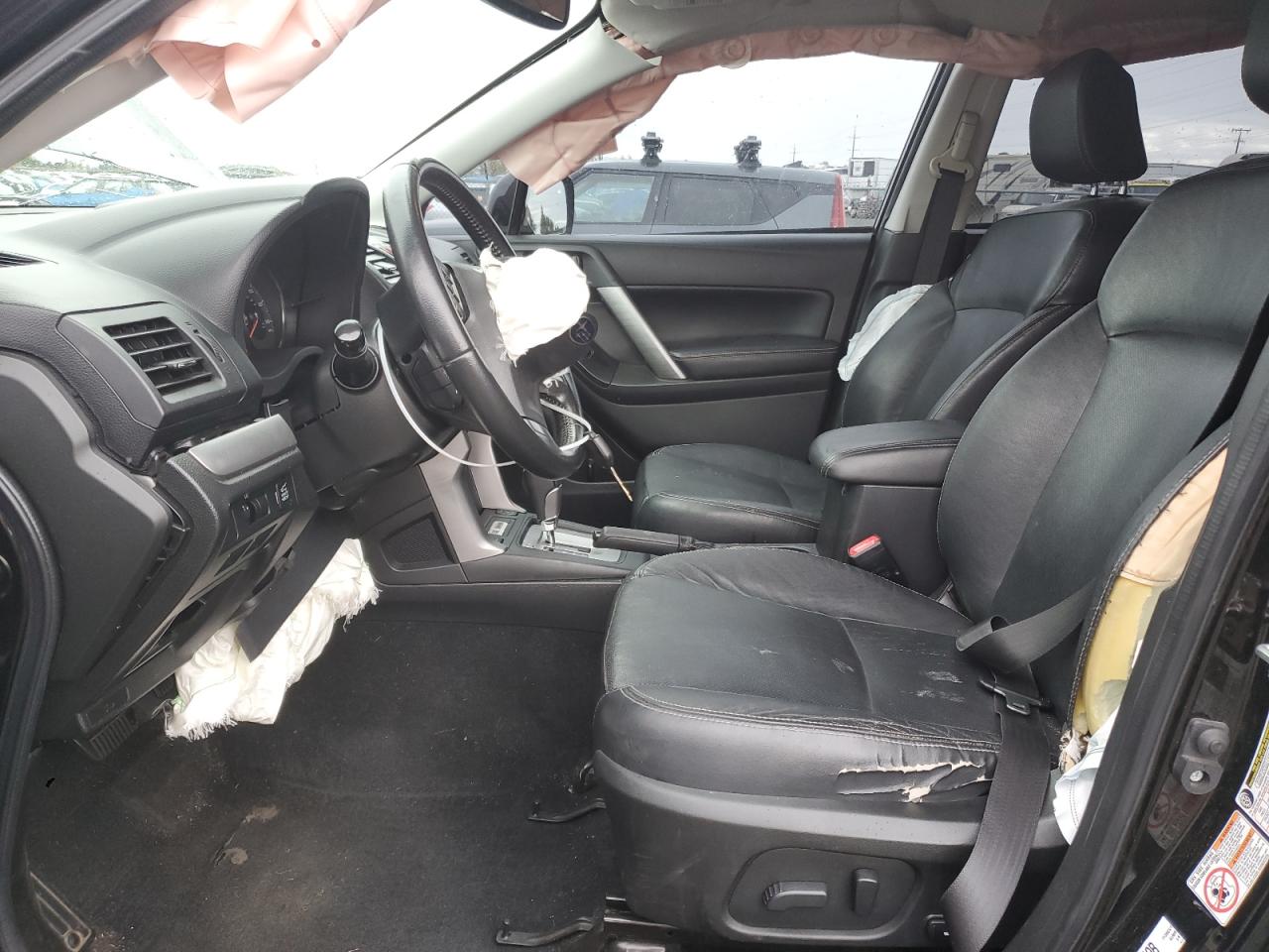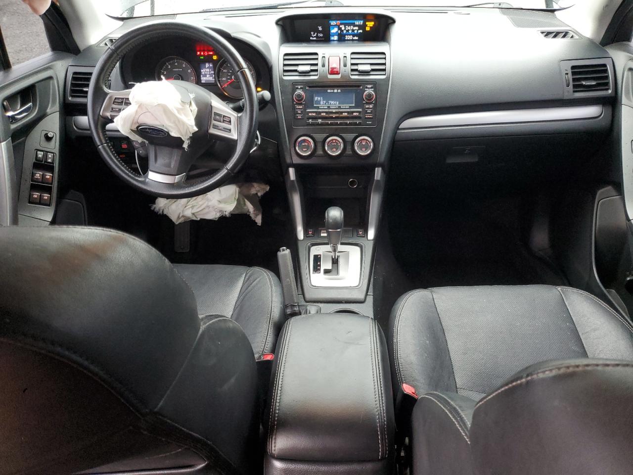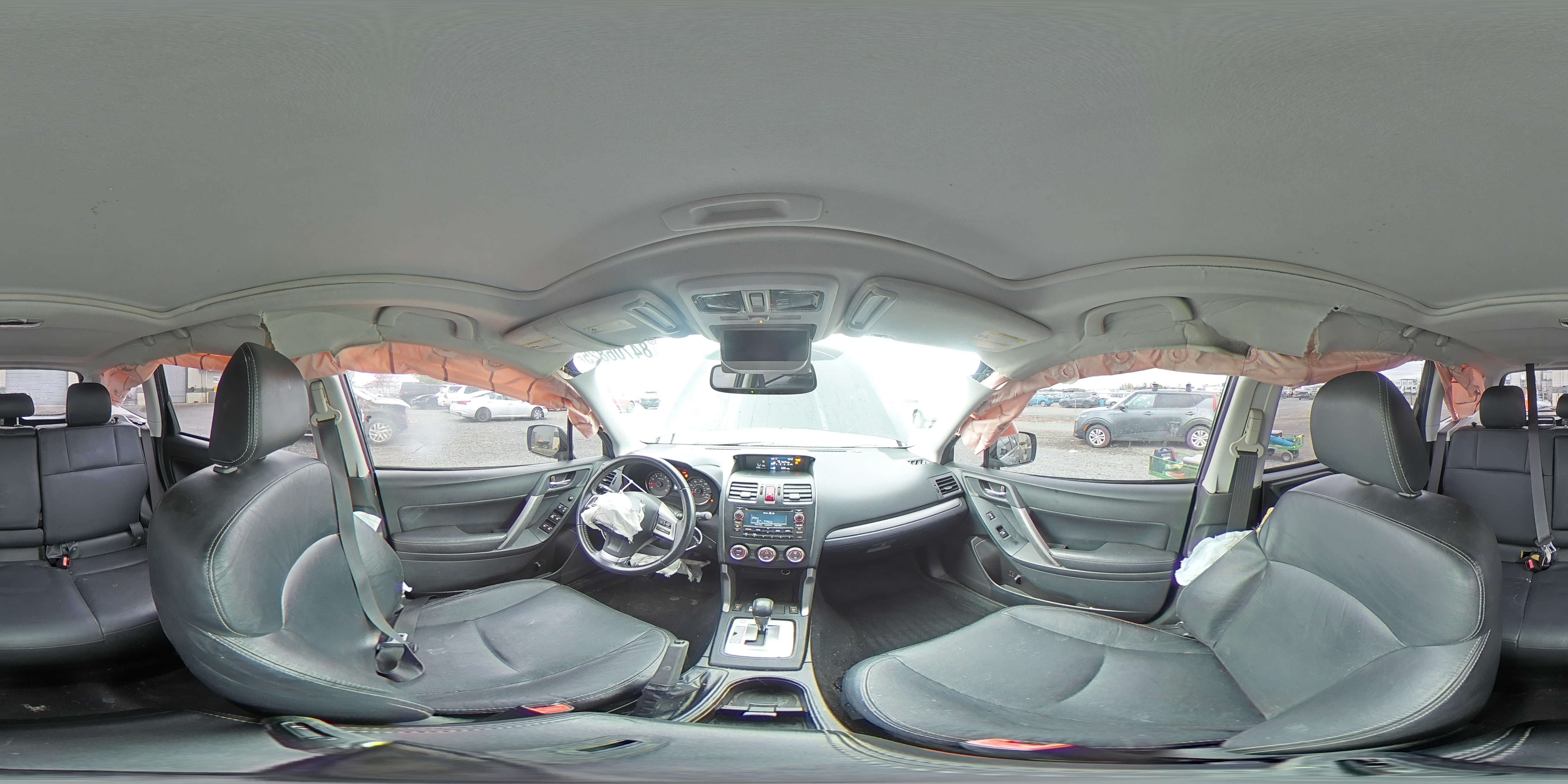 FairThe 2014 Subaru Forester 2 exhibits significant front-end damage, indicating a body-related collision. The black exterior shows visible damage, while the interior also reflects signs of impact, including deployed airbags. The vehicle is listed as 'Run & Drive Verified'.