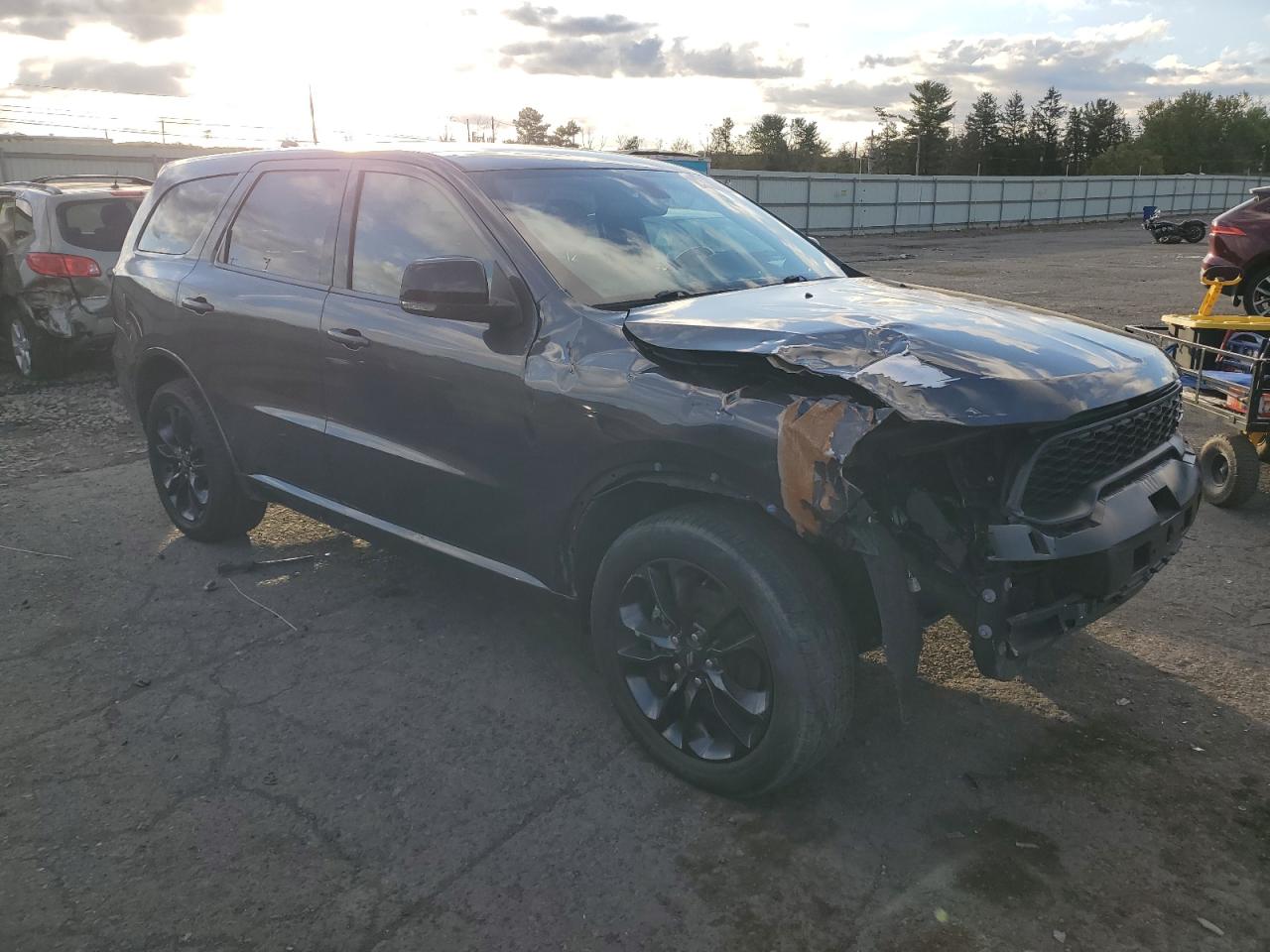 Fair2021 Dodge Durango GT. This SUV is gray and has sustained front-end damage. The vehicle is listed as Run & Drive Verified. The damage includes front-end damage, suggesting a collision. Despite the damage, the interior appears to be in good condition. This Durango requires significant repairs, making it suitable for someone looking for a project.