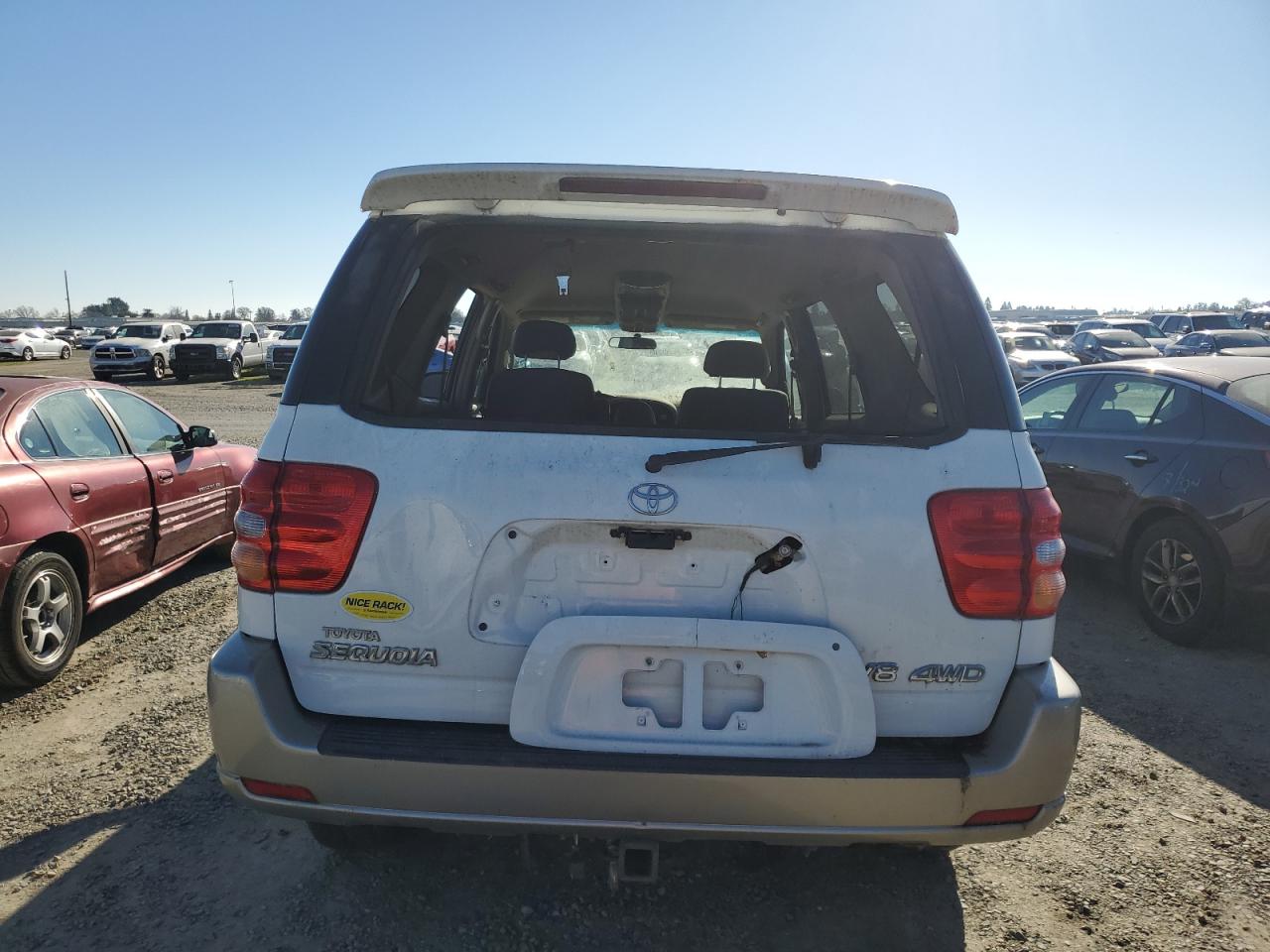 FairThe 2001 Toyota Sequoia SR is a white SUV. It has sustained rear-end damage, classified as body damage. The exterior condition is fair, while the interior is poor. The overall state of the vehicle is poor, with significant visible damage. The wheels appear to be in fair condition, but the vehicle requires considerable repair and is not drivable. The interior shows signs of significant wear and tear, including visible debris and potential damage. The headlights and glasses appear to be dirty. The vehicle's condition suggests it has been exposed to the elements and requires extensive restoration.