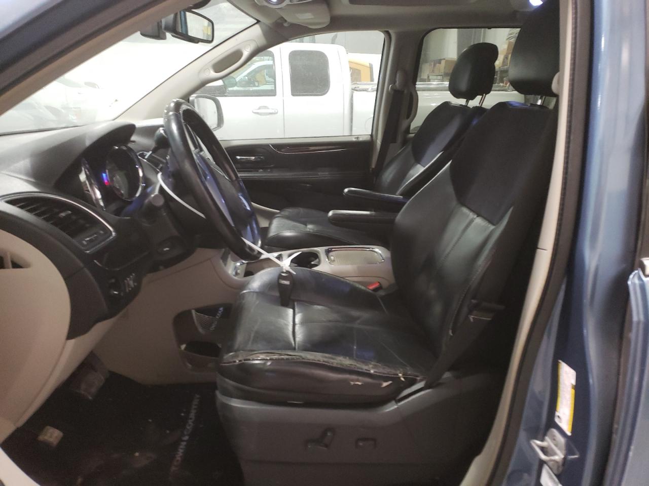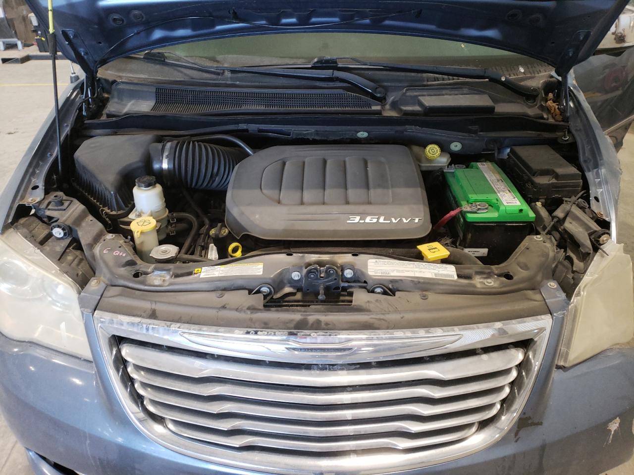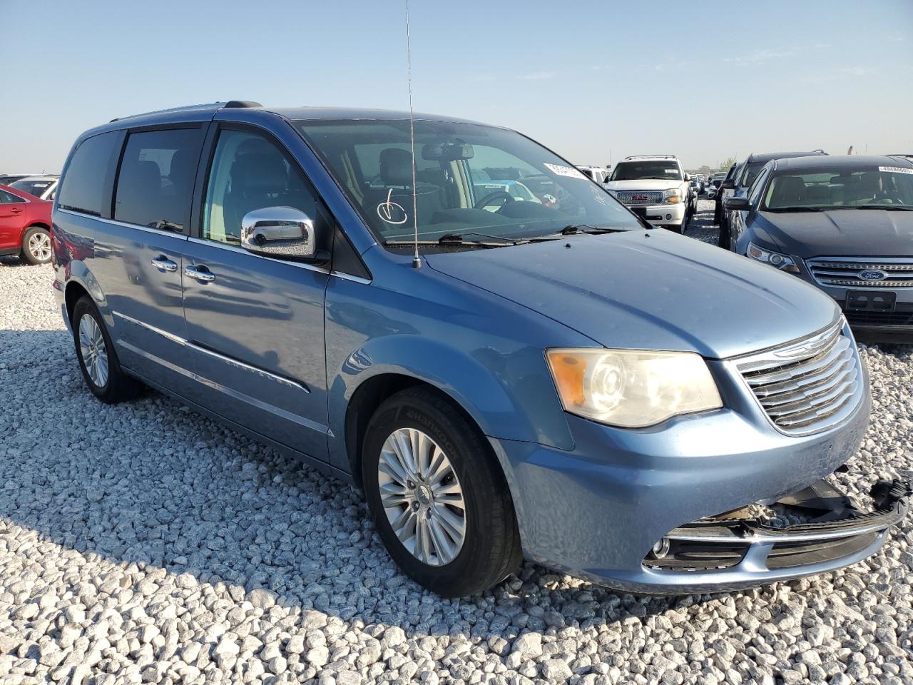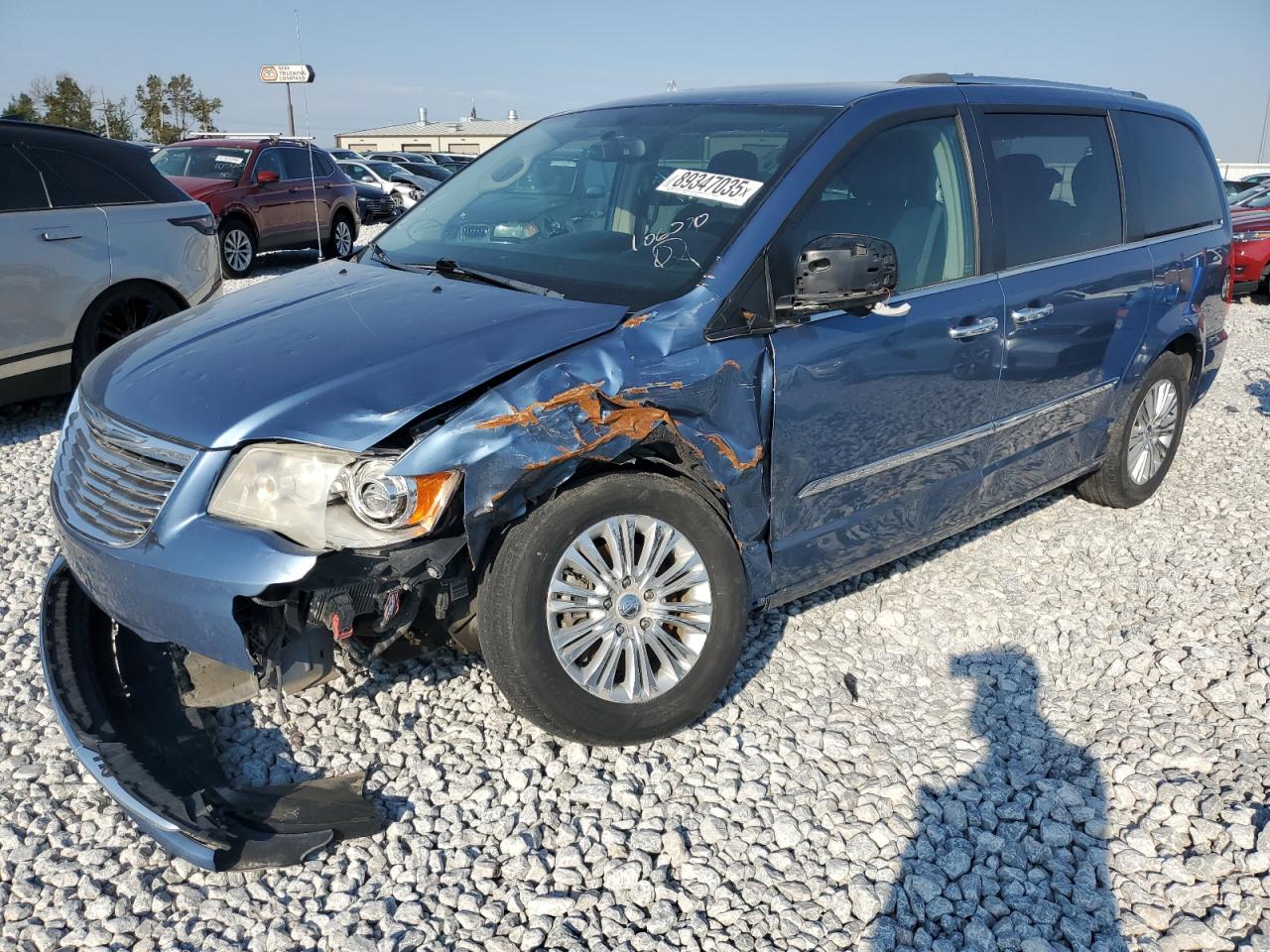 FairThe 2012 CHRYSLER TOWN & COUNTRY minivan exhibits significant damage from a front-end and side impact. The blue exterior shows extensive body damage, including a severely damaged front fascia and side panels. The wheels appear to be intact. The lights and glasses are visibly damaged. Interior condition is good. The car is listed as Run & Drive Verified.