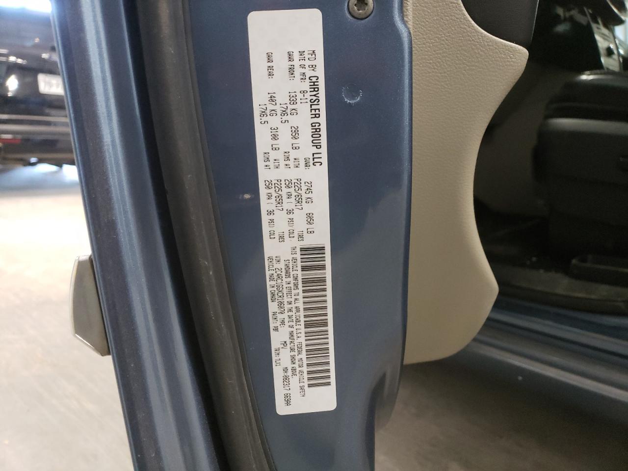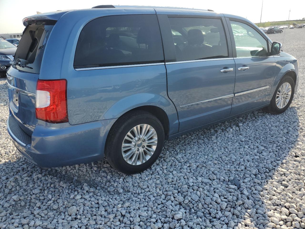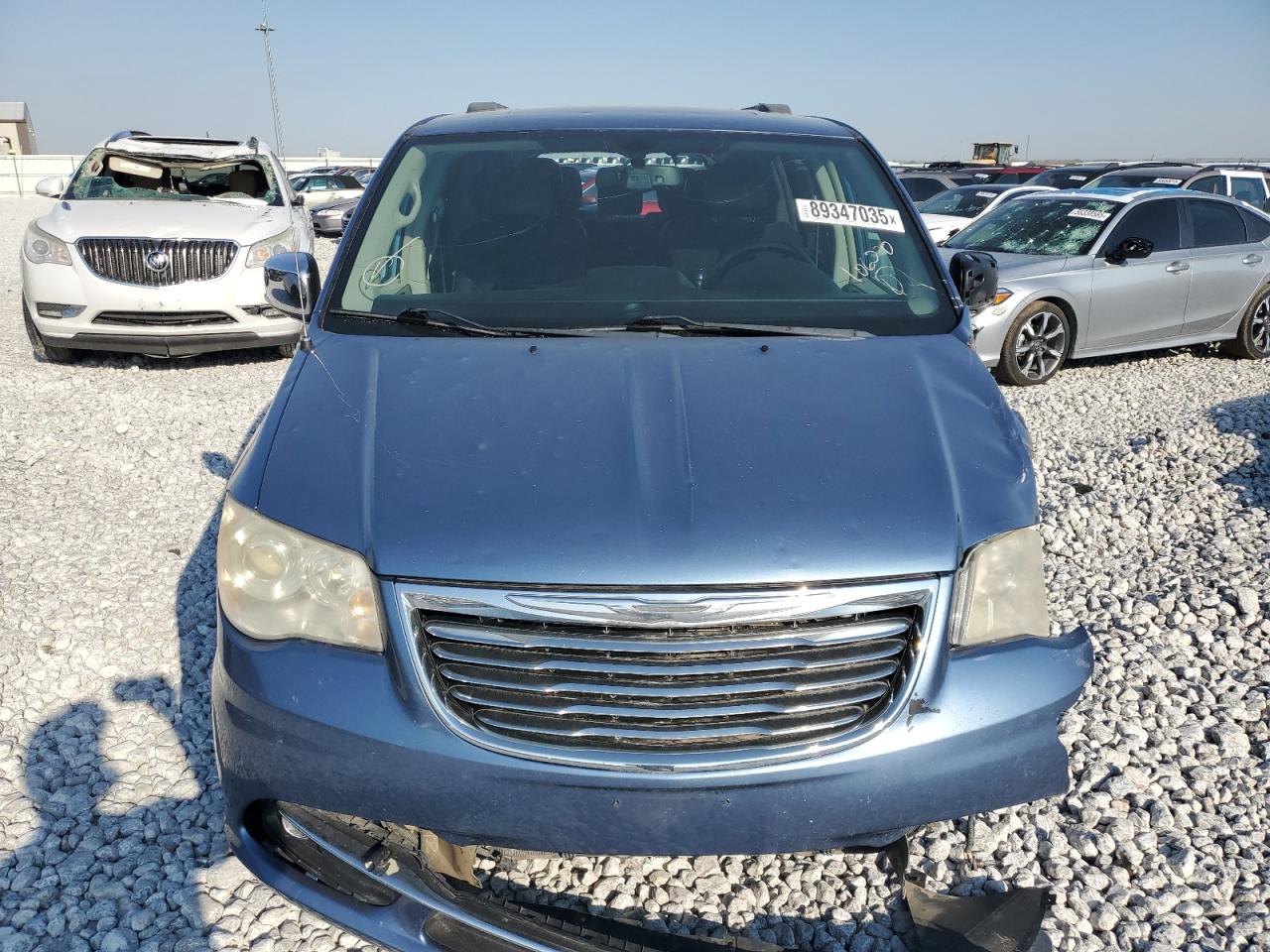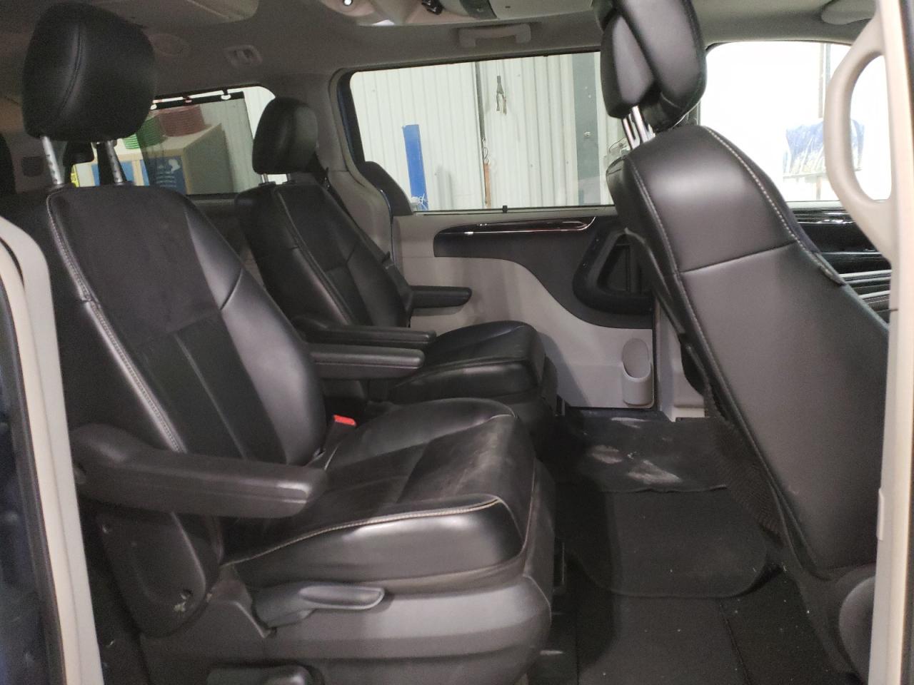 FairThe 2012 CHRYSLER TOWN & COUNTRY minivan exhibits significant damage from a front-end and side impact. The blue exterior shows extensive body damage, including a severely damaged front fascia and side panels. The wheels appear to be intact. The lights and glasses are visibly damaged. Interior condition is good. The car is listed as Run & Drive Verified.