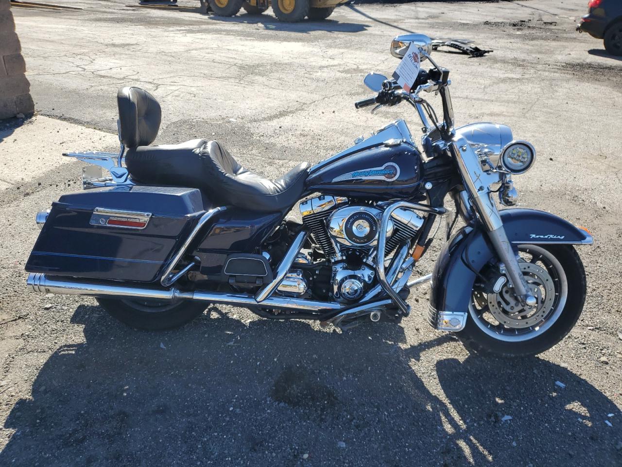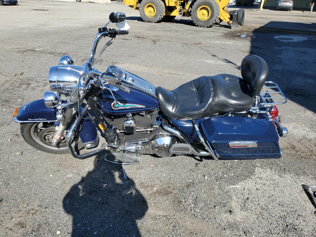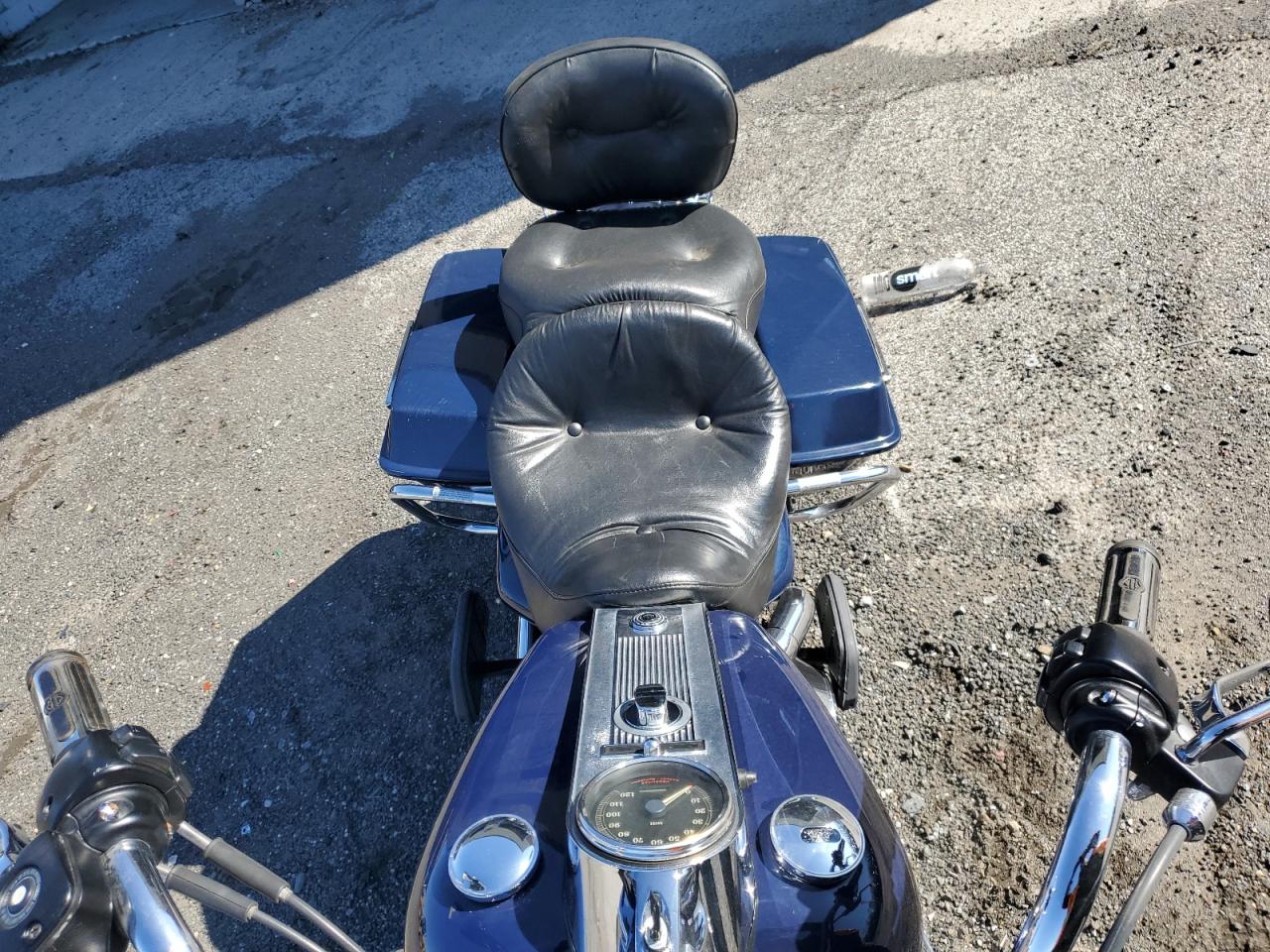 GoodThe HARLEY-DAVIDSON FLHRI SHRI 2003, is a blue motorcycle. The images show damage primarily to the body. The wheels and lights appear to be in good condition. The interior condition is considered good.