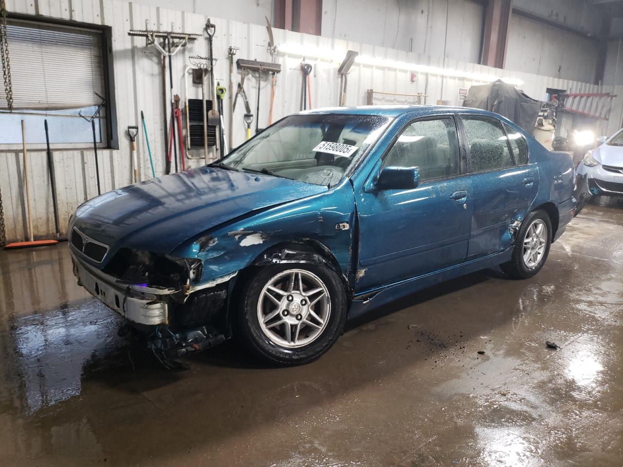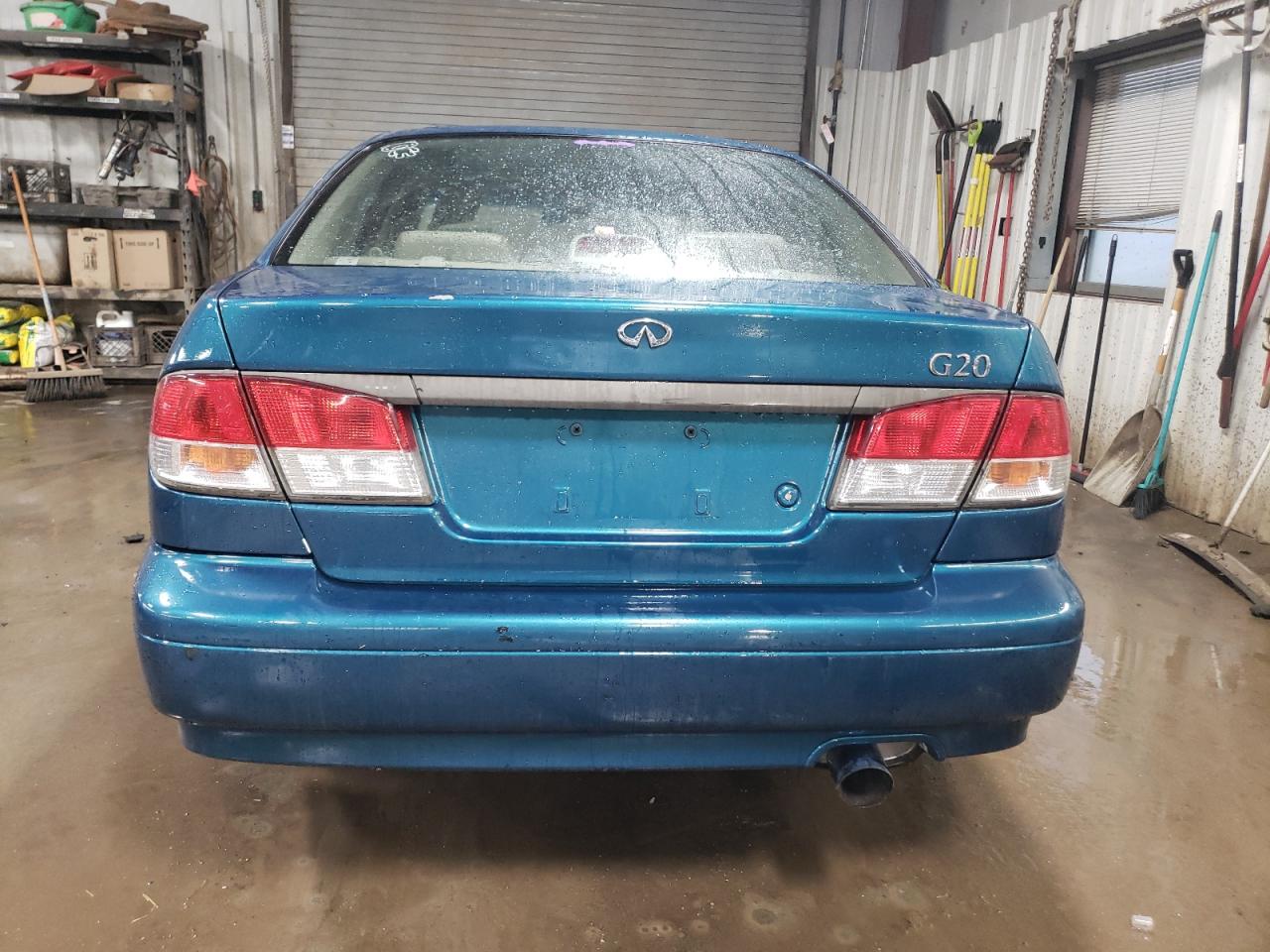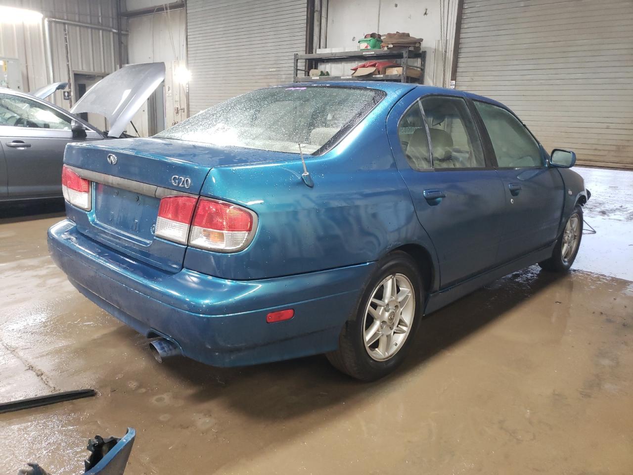 FairThe 2002 INFINITI G20 is a teal-colored sedan. This car is heavily damaged with impact damage across the body. The front end of the vehicle shows significant damage. The interior shows visible wear and tear and damage to the seats and dashboard. The vehicle starts.